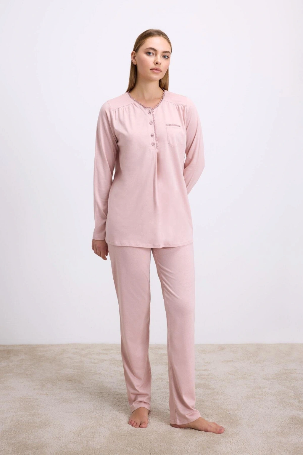 ? Modal Pamuklu Uzun Kollu Düğmeli 2li Pijama Takımı ?