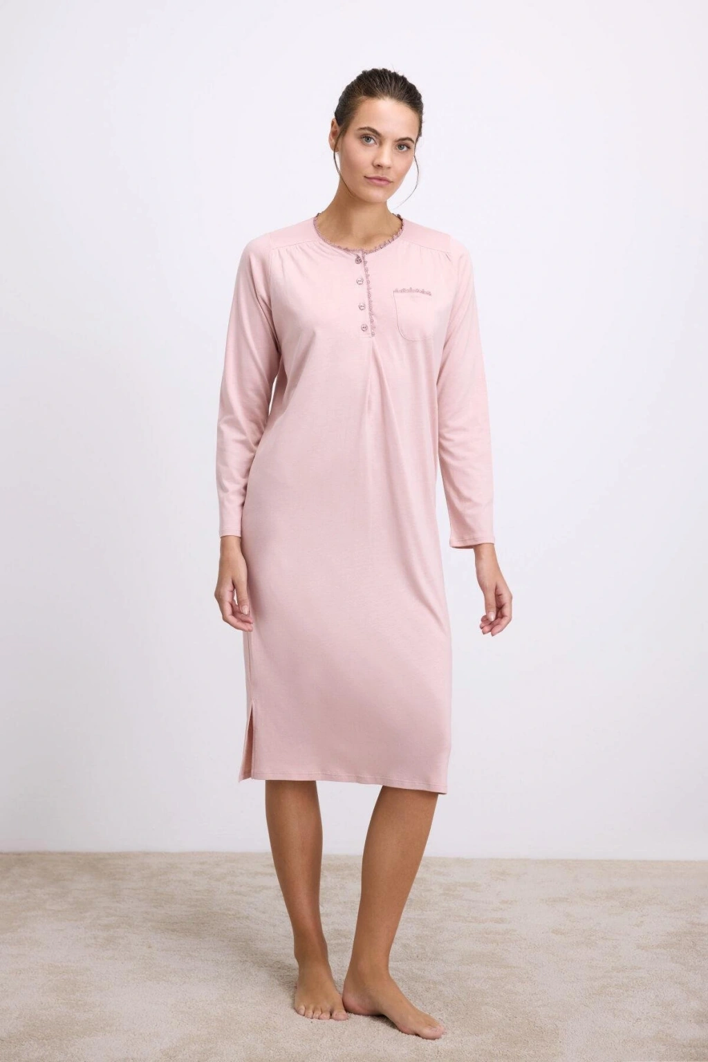 ? Modal Uzun Kollu Düğmeli Gecelik ?