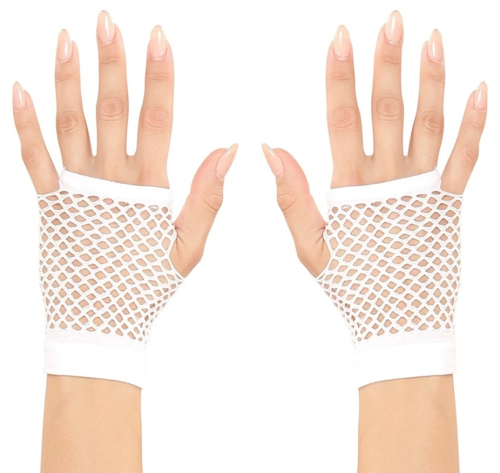 Karnaval ve cadılar bayramı kostümünüze bir dokunuş katacak kısa beyaz örgü eldivenler | Görünümünüzü bu 11 cm beyaz örgü eldivenlerle tamamlayın