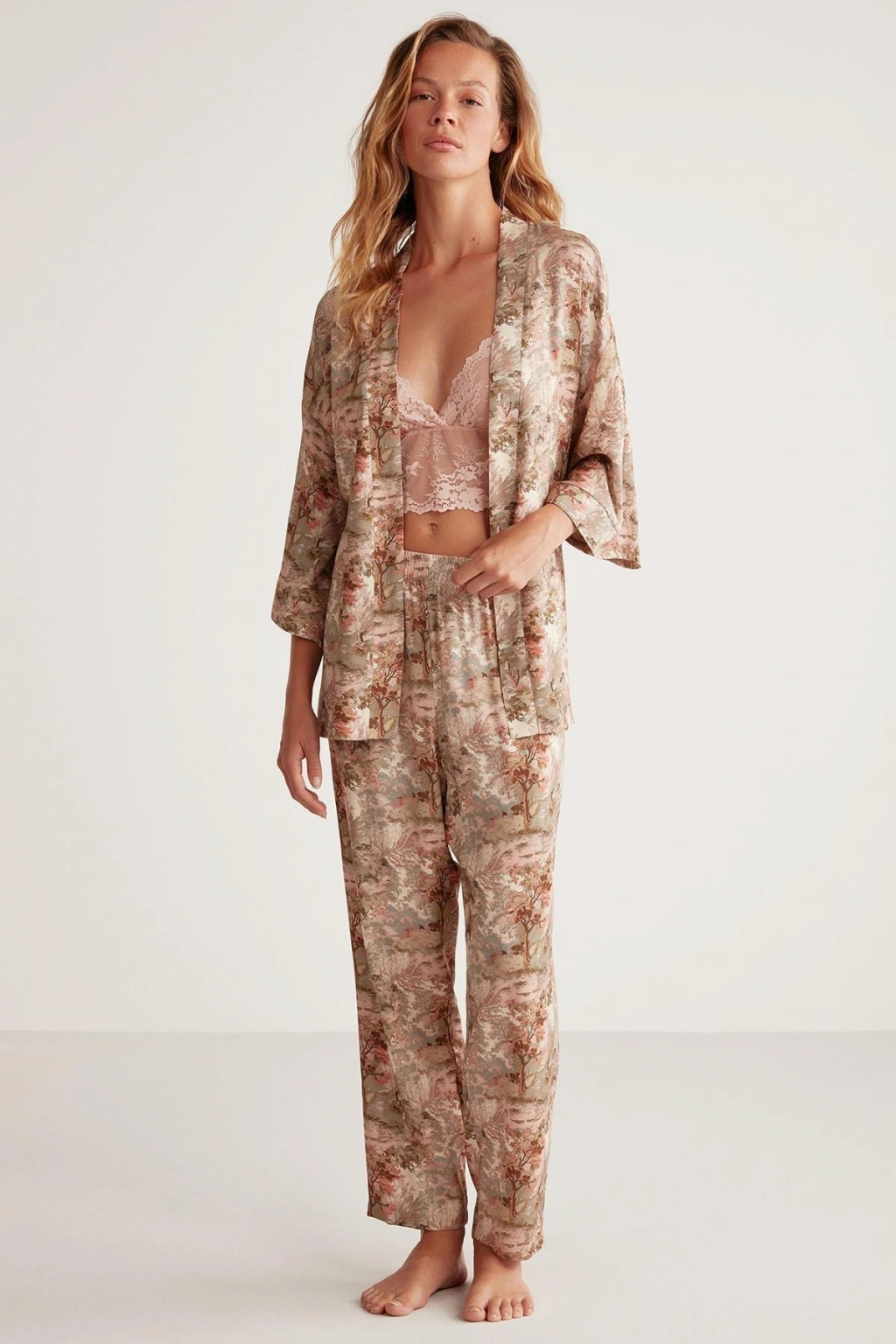 Arias Closet Balenli Destekli Dolgulu Parlak Baskılı Dantelli Büstiyer ve Pantolon Pijama Takım (4176)
