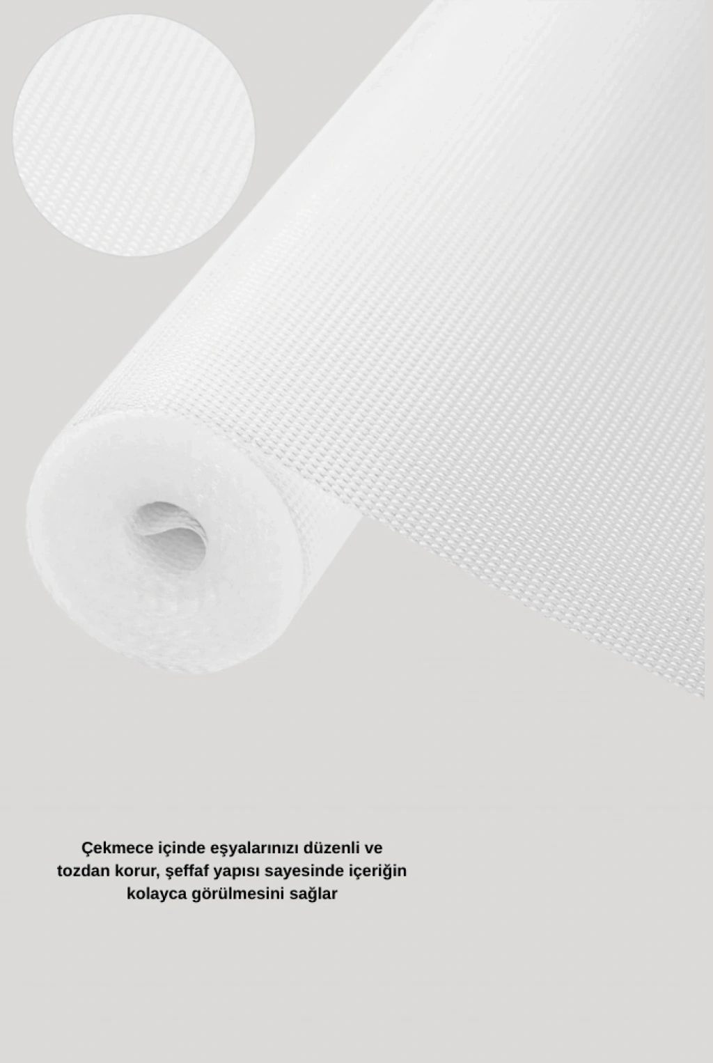 Bu şeffaf ve silikon tabanlı çekmece içi düzenleyici, çekmece içindeki dağınıklığı ortadan kaldırmak ve eşyalarınızı güvenle saklamak için tasarlanmıştır. Ürün 10 metre uzunluğundadır ve tek parça halinde gönderilir. Bu sayede uzun çekmecelerde tek seferde kullanılabilir ya da istenilen ölçülerde kesilerek birden fazla alanda değerlendirilebilir.Şeffaf tasarımı, çekmece içeriğinin kolayca görülmesini sağlar. Aradığınız eşyayı bulmak için çekmeceyi karıştırmanıza gerek kalmaz. Tozdan koruyucu özelliği, eşyaların daha temiz kalmasına yardımcı olur ve hijyenik bir saklama alanı oluşturur.Alt kısmında yer alan silikonlu kaymaz yüzey, çekmece içerisinde sabit durmasını sağlar. Çekmece açıldığında ürün kaymaz, içindeki eşyalar da dağılmaz. Dayanıklı plastik malzeme, ürünü sık kullanıma uygun hale getirir ve uzun süre formunu korur.Kolay temizlenebilir yapısı sayesinde su ile hızlıca temizlenebilir. 10 metrelik uzunluk, özellikle mutfak ve banyo gibi birden fazla çekmecenin bulunduğu alanlarda tek ürünle çözüm sunar. Pratik, dayanıklı ve düzen sağlayan bir çekmece içi çözümdür.