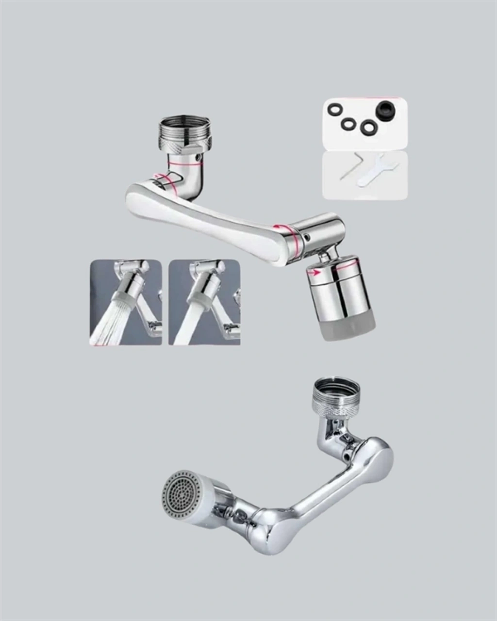 Yenilikçi 1080° dönebilen robotik kol tasarımı sayesinde bu musluk havalandırıcı, suyun yönünü istediğiniz gibi ayarlamanıza olanak tanır. 3 eklemli döner kolu ile hem yukarı-aşağı hem de sağa-sola tam esneklik sunar. Lavabo temizliğini kolaylaştırır, suyun farklı yönlere akmasını sağlar. El, yüz yıkama, meyve-sebze durulama gibi günlük işlerde hijyenik ve konforlu bir kullanım deneyimi sunar. Özellikle dar lavabolarda suyun sıçramasını önleyerek hem temizlik hem kullanıcı rahatlığı sağlar.