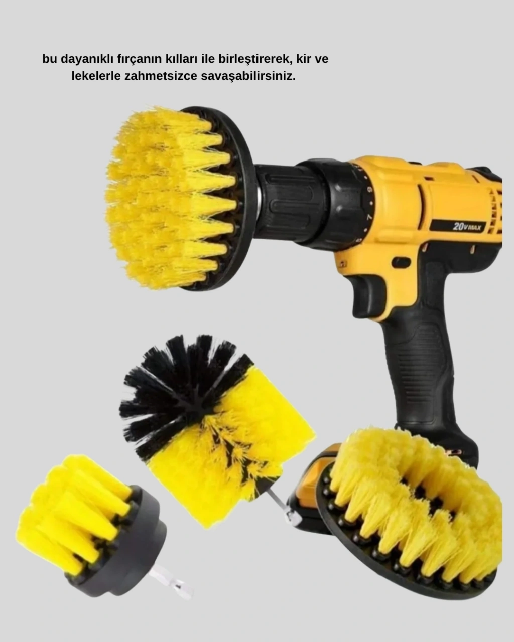 Evde, ofiste ya da araç bakımında derin temizlik için ideal olan 3’lü matkap fırça seti, güçlü performansı ve çok yönlülüğüyle öne çıkar.Matkabınıza kolayca takabileceğiniz bu fırçalar, yüksek devirle dönerken yüzeydeki inatçı kir ve lekeleri zahmetsizce söker.Üstelik, hem kablolu hem de şarjlı matkaplarla uyumludur.Üç farklı boyuttaki fırça başlığı, temizlikte esneklik sağlar:küçük başlık dar alanlar için, orta başlık yüzeyler için, geniş başlık ise zemin ve jant temizliği için idealdir.Dayanıklı ve sert kıl yapısı, yüzeyi çizmeden güçlü bir temizlik etkisi sunar.Banyo, mutfak, lavabo, tezgah, fayans araları, araç jantları, mermer, halı, kaplama yüzeyler ve hatta dış cephelerde bile kullanılabilir.Elle temizlikte ulaşılamayan noktalara kolayca ulaşır, güçlü döner etkisiyle kiri söker.Zaman tasarrufu sağlayan bu set, kısa sürede büyük alanların temizlenmesine olanak tanır.Ergonomik ve pratik yapısı, hem ev hanımları hem de profesyonel temizlik ekipleri için uygundur.Klasik fırçalama yöntemlerine göre çok daha etkili ve uzun ömürlü bir çözümdür.