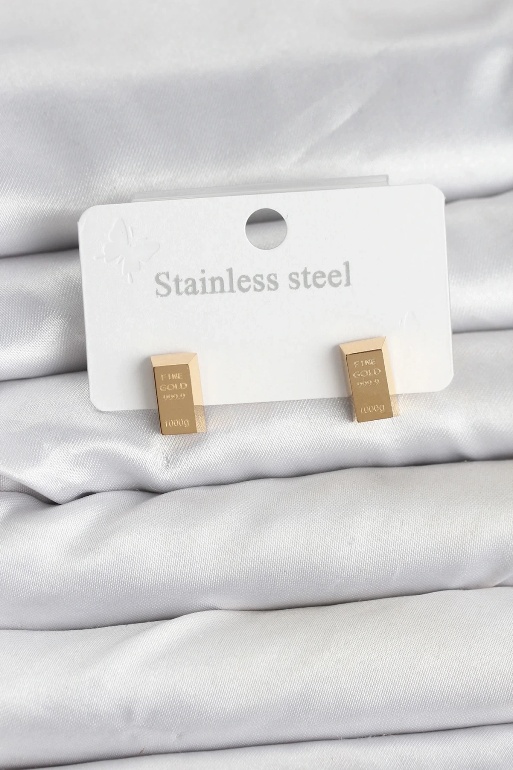 CEYLAN ADAM 316L Çelik Gold Renk Külçe Altın Model Kadın Küpe
