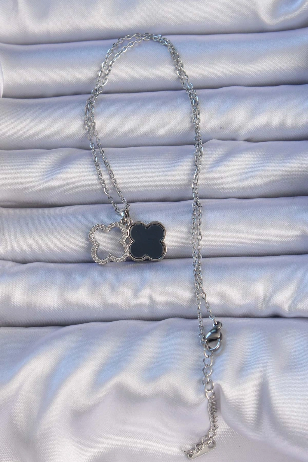 CEYLAN ADAM 316L Çelik Gümüş Renk Siyah Mineli Zirkon Taşlı Yonca Figürlü Kolye