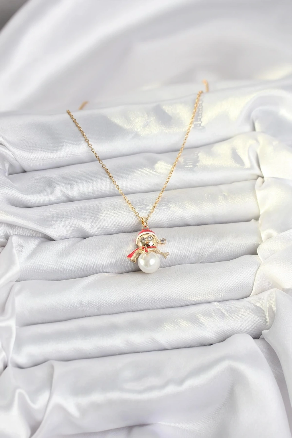 CEYLAN ADAM 316L Çelik Zincir Gold Renk Kardan Adam Figürlü Yılbaşı Temalı Kadın Kolye