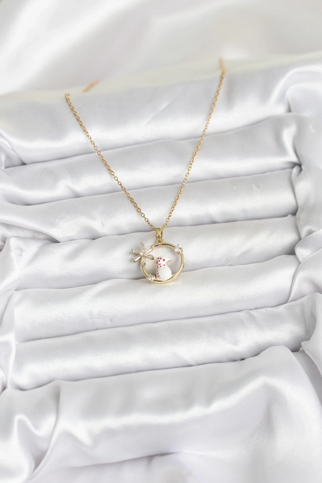 CEYLAN ADAM 316L Çelik Zincir Gold Renk Kardan Adam Figürlü Yılbaşı Temalı Kadın Kolye