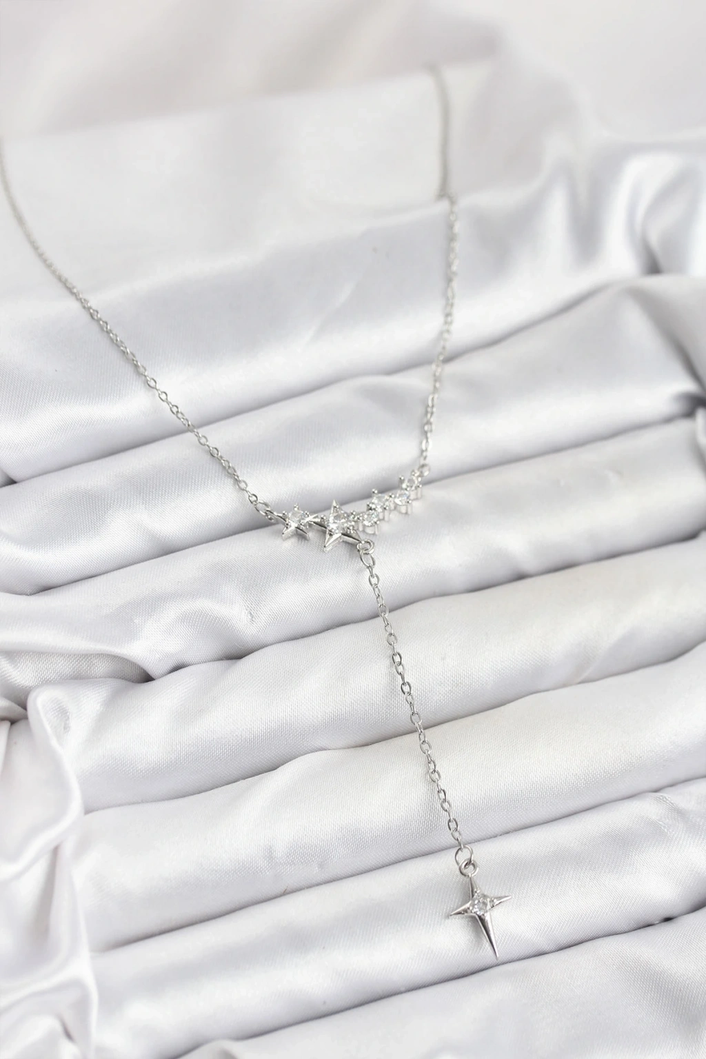 CEYLAN ADAM 316L Çelik Zincir Gümüş Renk Yıldız Model Y Kadın Kolye