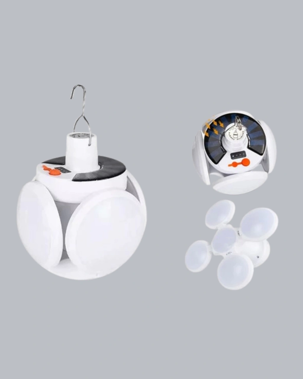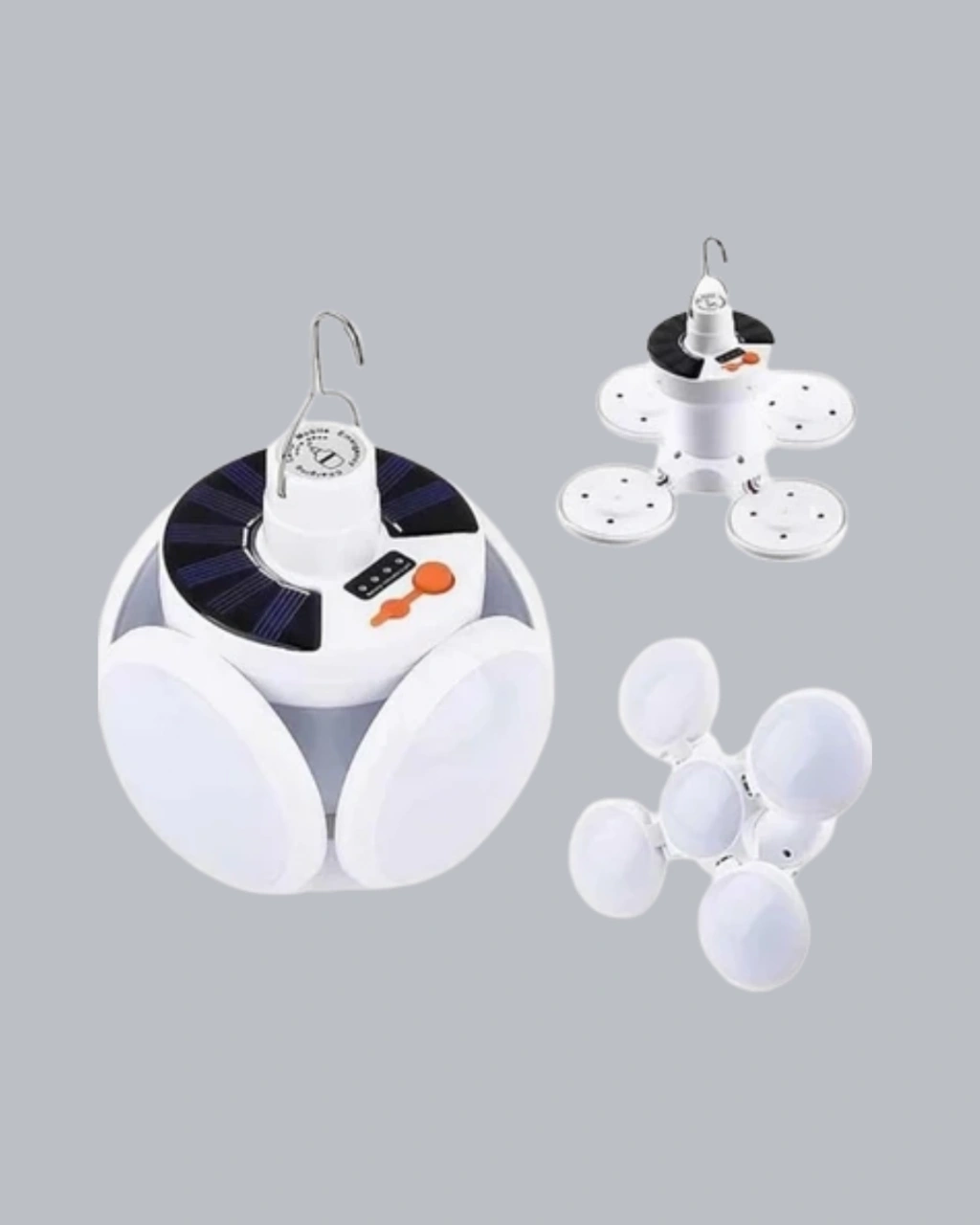 Yenilikçi 5 kanatlı tasarımıyla bu solar kamp lambası, klasik lambalara göre çok daha geniş bir aydınlatma alanı sunar. Her kanat ayrı yönlendirilebilir, böylece ışığı istediğiniz açıda yayabilirsiniz. 45 adet yüksek parlaklıkta LED, güçlü bir beyaz ışık üretir. 6500K renk sıcaklığıyla doğal gün ışığına yakın bir aydınlatma sağlar. 2400 mAh pil kapasitesi, uzun süreli kullanım için idealdir. USB veya güneş enerjisiyle şarj edilebilir. 6-8 saat aralıksız kullanım süresiyle gecenizi aydınlatır. IP65 suya dayanıklı gövdesiyle yağmur, nem ve dış etkenlere karşı dayanıklıdır. Kamp, bahçe, garaj veya acil durumlar için mükemmeldir. Kompakt boyutu (14x11.5 cm) taşımayı kolaylaştırır. Enerji tasarruflu, çevre dostu ve uzun ömürlü bir aydınlatma çözümüdür.