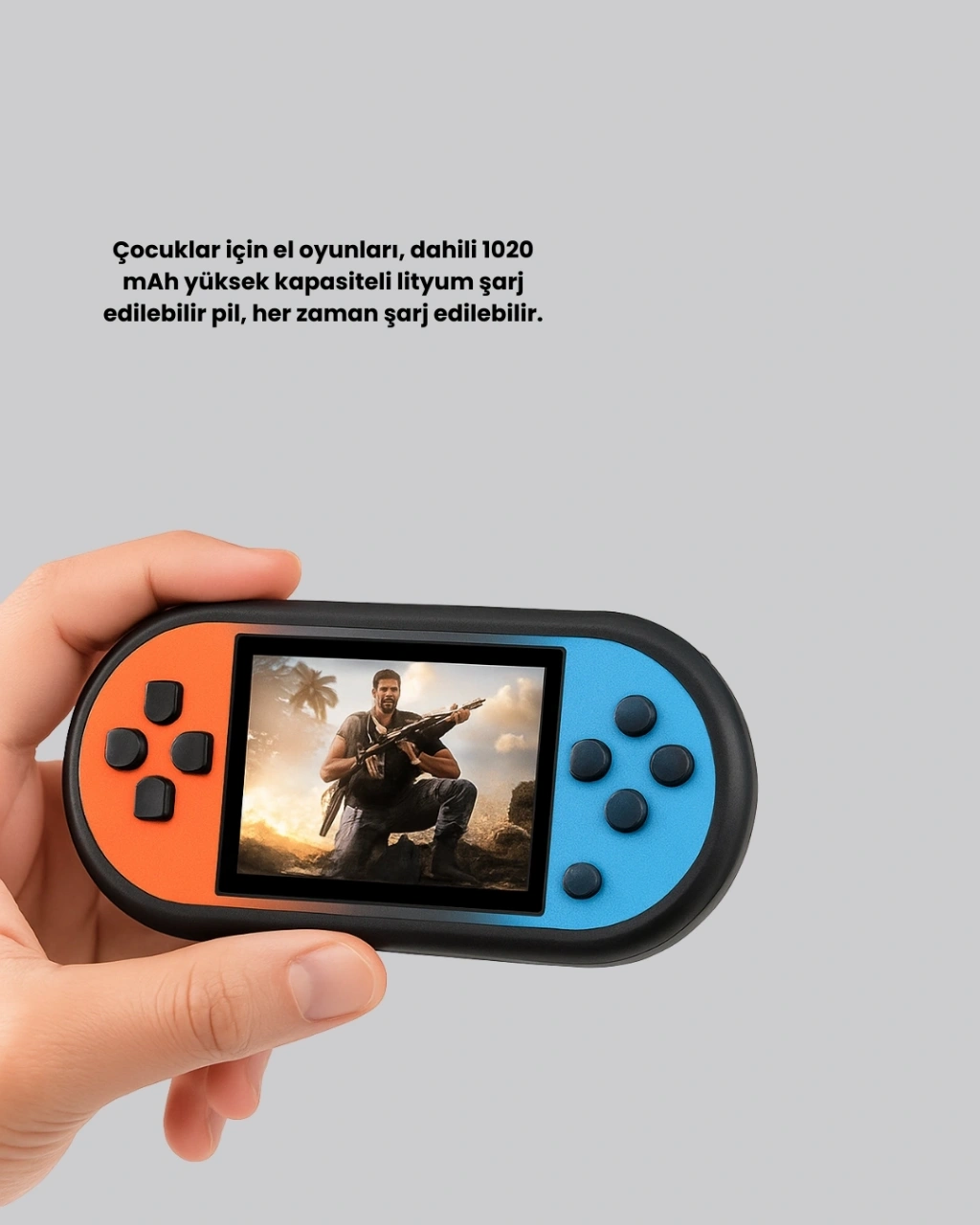 520 oyunlu taşınabilir oyun konsolu, kompakt tasarımı ve etkileyici oyun çeşitliliği ile her yaşa hitap eden eğlenceli bir elektronik cihazdır. İçerisinde bulunan oyunların her biri özel olarak seçilmiş olup, arcade oyunlarından bulmacalara kadar çok geniş bir kategori yelpazesi sunar. HD LCD ekran sayesinde tüm oyunlar net, canlı ve yüksek kaliteyle görüntülenir. Bu ekran, göz yormayan yapısıyla uzun oyun oturumlarında bile kullanıcıların konforunu korur.AV çıkış özelliği, cihazı televizyon ile uyumlu hale getirir. Bu sayede oyunlar, evde geniş ekran deneyimine dönüşerek çok daha keyifli hale gelir. TV bağlantısı, özellikle aile içi eğlencelerde, çocuklara oyun zamanlarında veya arkadaş buluşmalarında büyük bir avantaj sunar. USB şarj kablosu ile hızlıca şarj edilebilen cihaz, uzun pil kapasitesi ile gün boyu kullanım sağlar. Düşük enerji harcaması, cihazı daha uzun süre oyun oynamaya uygun hale getirir.Konsol, ergonomik tuş dizilimi sayesinde hem küçük eller hem de yetişkin kullanıcılar için rahat bir tutuş sağlar. Tasarımında kullanılan hafif gövde yapısı, taşıma kolaylığı sunar. Seyahatte, otobüste, evde veya dış mekanda oyun oynamak isteyenler için mükemmel bir çözümdür. Cihaz aynı zamanda hediye olarak oldukça popülerdir. Hem oyun meraklısı çocuklara hem de nostalji arayan yetişkinlere alınabilecek harika bir üründür.