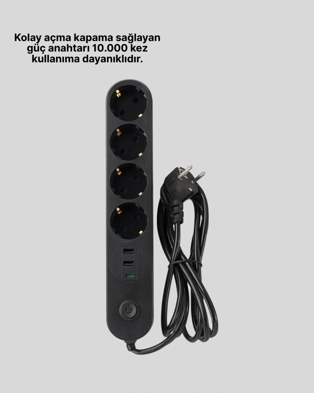 Akım korumalı çoklu priz, elektronik cihazlarınızı güvenle kullanmanız için tasarlanmış dayanıklı bir çözümdür. 4 adet Schuko priz, 2 USB ve 1 Type-C çıkışı ile geniş bağlantı seçenekleri sunar. Aynı anda birden fazla cihazı güvenle çalıştırabilir ve şarj edebilirsiniz.2500W güç kapasitesi ve 2500 Joule maksimum koruma değeri, ani voltaj yükselmelerine karşı güçlü bir savunma sağlar. Smart akım dengeleme teknolojisi, her cihazın ihtiyacına uygun enerji dağıtımı yapar. Termal ve kısa devre koruması, güvenli kullanımın temelini oluşturur.PC-ABC gövde yapısı, yüksek ısıya karşı dirençlidir. 20.000 kez tak-çıkar ve 10.000 aç-kapa ömrü, uzun süreli kullanım için güven verir. Led indikatörlü anahtar, kullanım kontrolünü kolaylaştırır.2 metrelik kablosu ile esnek kullanım sunan bu çoklu priz, ev ve ofislerde düzenli ve güvenli enerji kullanımını destekler. Siyah renkli tasarımı her ortamla uyumludur.