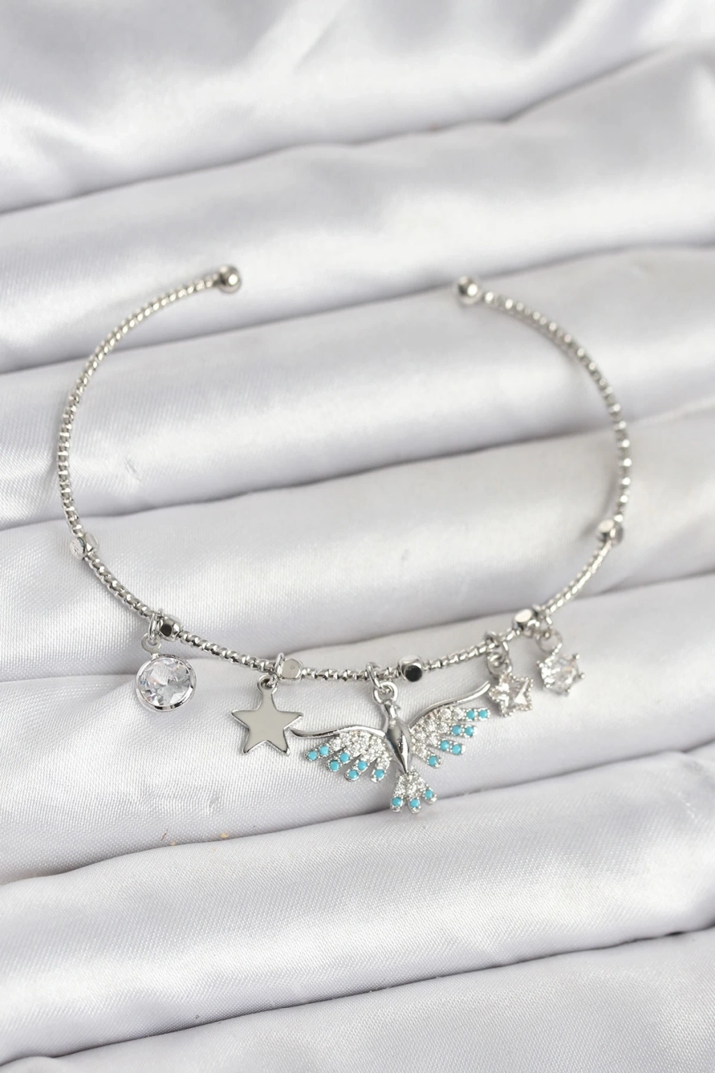 CEYLAN ADAM Anka Kuşu Charmlı Gümüş Renk Pirinç Kadın Bileklik