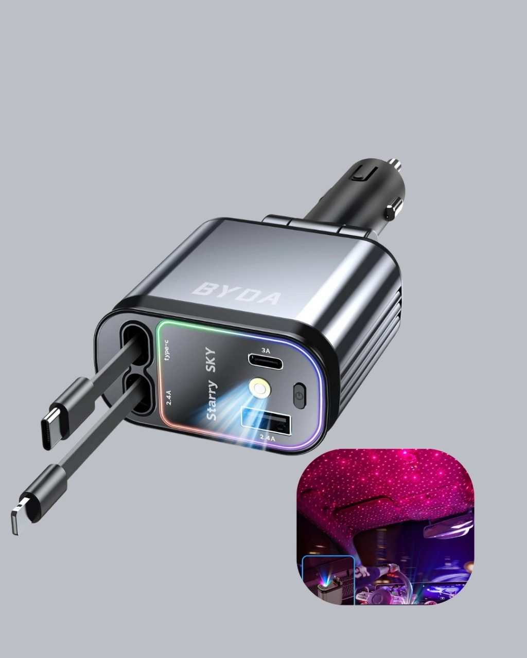 Her yolculukta enerjiniz tam olsun! Araç Şarj Cihazı 4 Portlu 66W Hızlı Şarjlı LED Işıklı ve 180° Dönebilir, hem estetik hem fonksiyonel bir tasarım sunarak araç içi şarj ihtiyaçlarınıza profesyonel bir çözüm getiriyor.66W güç kapasitesi, aynı anda dört cihazı hızlı bir şekilde şarj etmenize olanak tanır.PD ve QC hızlı şarj teknolojileri, akıllı telefonlar, tabletler, akıllı saatler ve kulaklıklar dahil tüm cihazlarınız için en uygun enerji akışını sağlar.80 cm çekilebilir kablosu, kablo kirliliğini ortadan kaldırırken sürüş sırasında kullanım kolaylığı sunar.180° dönebilen başlık, dilediğiniz açıdan rahat erişim sağlar ve sallantılarda gevşeme yapmadan sabit kalır.LED ışık sistemi, gece sürüşlerinde araç içi ambiyansı zenginleştirir. Müzik ritmine duyarlı ışık modları, her yolculuğu keyifli hale getirir.12V-24V uyumluluk özelliği, cihazın binek araçlardan kamyonlara kadar geniş bir yelpazede kullanılmasını sağlar.Dayanıklı malzeme yapısı uzun ömürlü kullanım sunarken, kompakt tasarımı sayesinde araç içinde yer kaplamaz.Araç Şarj Cihazı 4 Portlu 66W Hızlı Şarjlı LED Işıklı ve 180° Dönebilir, teknolojiyi şıklıkla birleştirerek her yolculuğu konforlu hale getirir.