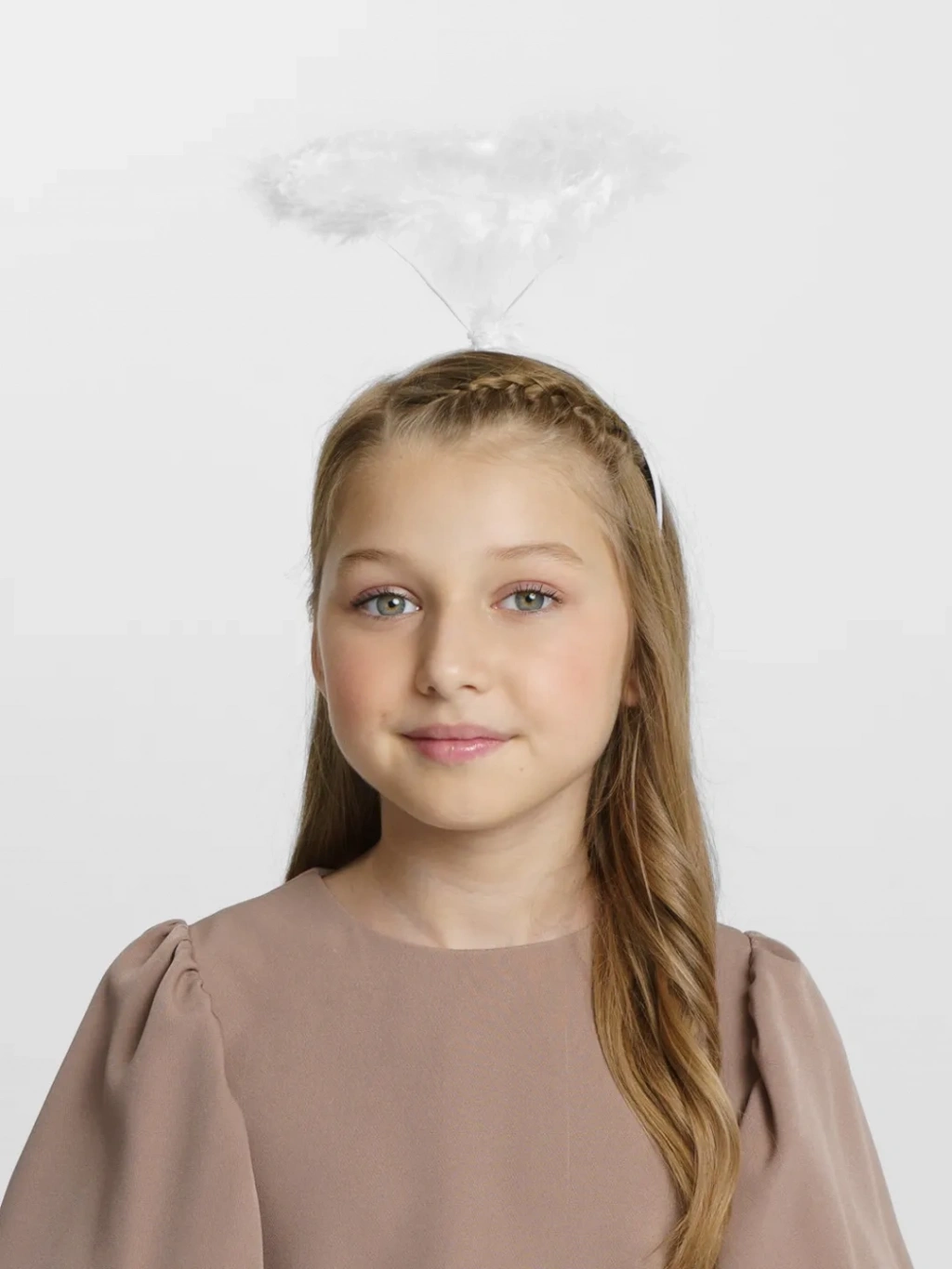 CEYLAN ADAM Beyaz Renkli Tüylü Bebek Melek Kanadı ve Tacı 30x45 cm