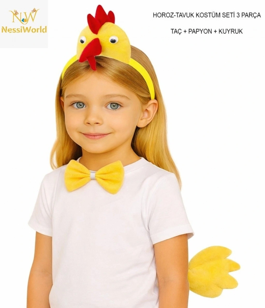 • CEYLAN ADAM Çocuk Horoz Tavuk Kostüm Seti 3 Parça (Taç + Papyon + Kuyruk)