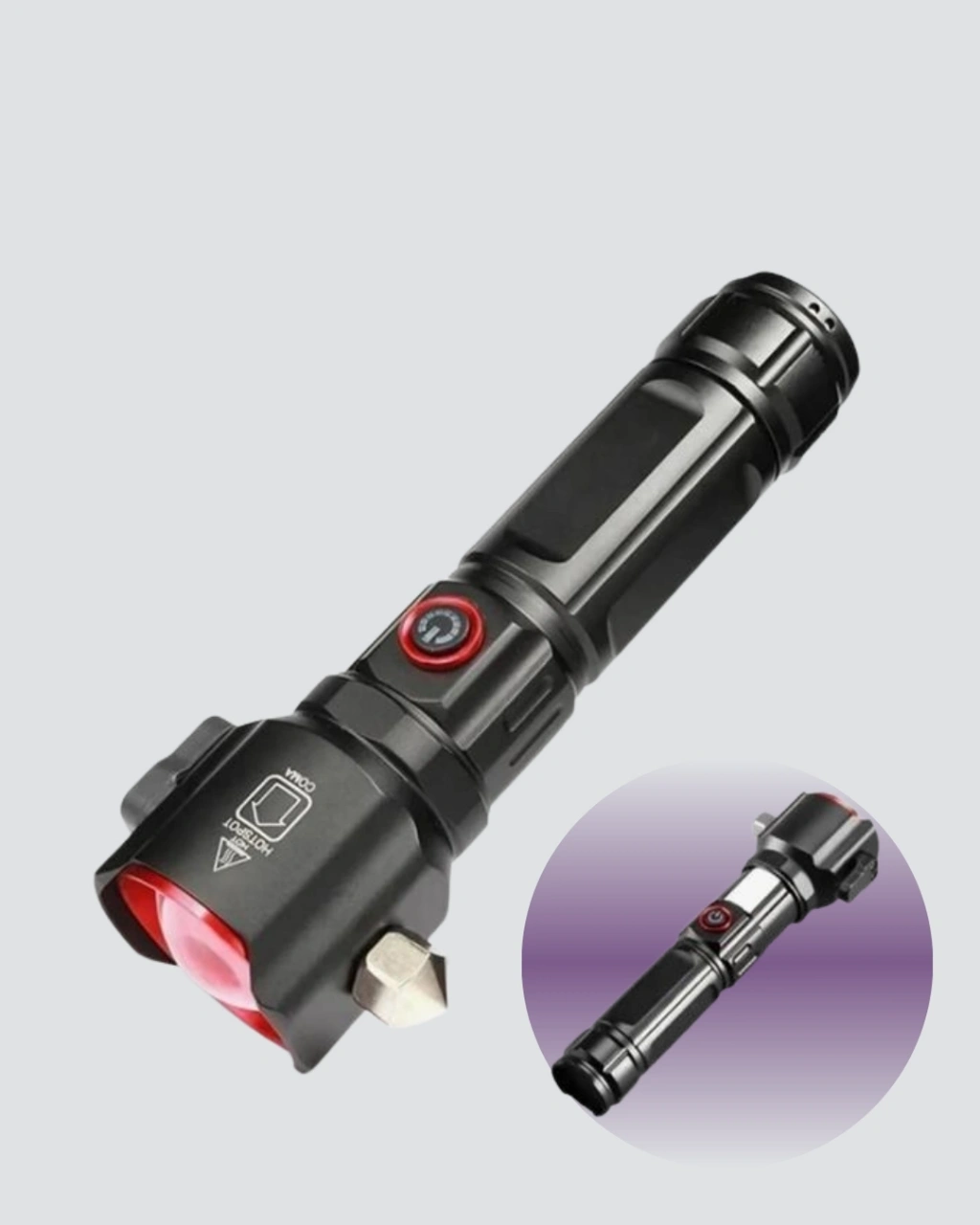 Bu acil durum feneri, çok fonksiyonlu yapısıyla hem günlük hem de özel durumlar için tasarlanmıştır. Güçlü LED ışık sistemi karanlık alanlarda net görüş sağlar. Yan ışık modu, geniş alanları aydınlatmak için idealdir.Acil durum çekici, araç kazalarında veya cam kırılması gereken anlarda hayati önem taşır. Pusula özelliği ile yönünüzü kolayca belirleyebilirsiniz. USB şarj edilebilir batarya sayesinde uzun süreli ve ekonomik kullanım sunar.Dayanıklı malzemeden üretilmiş olup dış mekân kullanımına uygundur. Kamp, araç ve ev için güvenilir bir yardımcıdır.