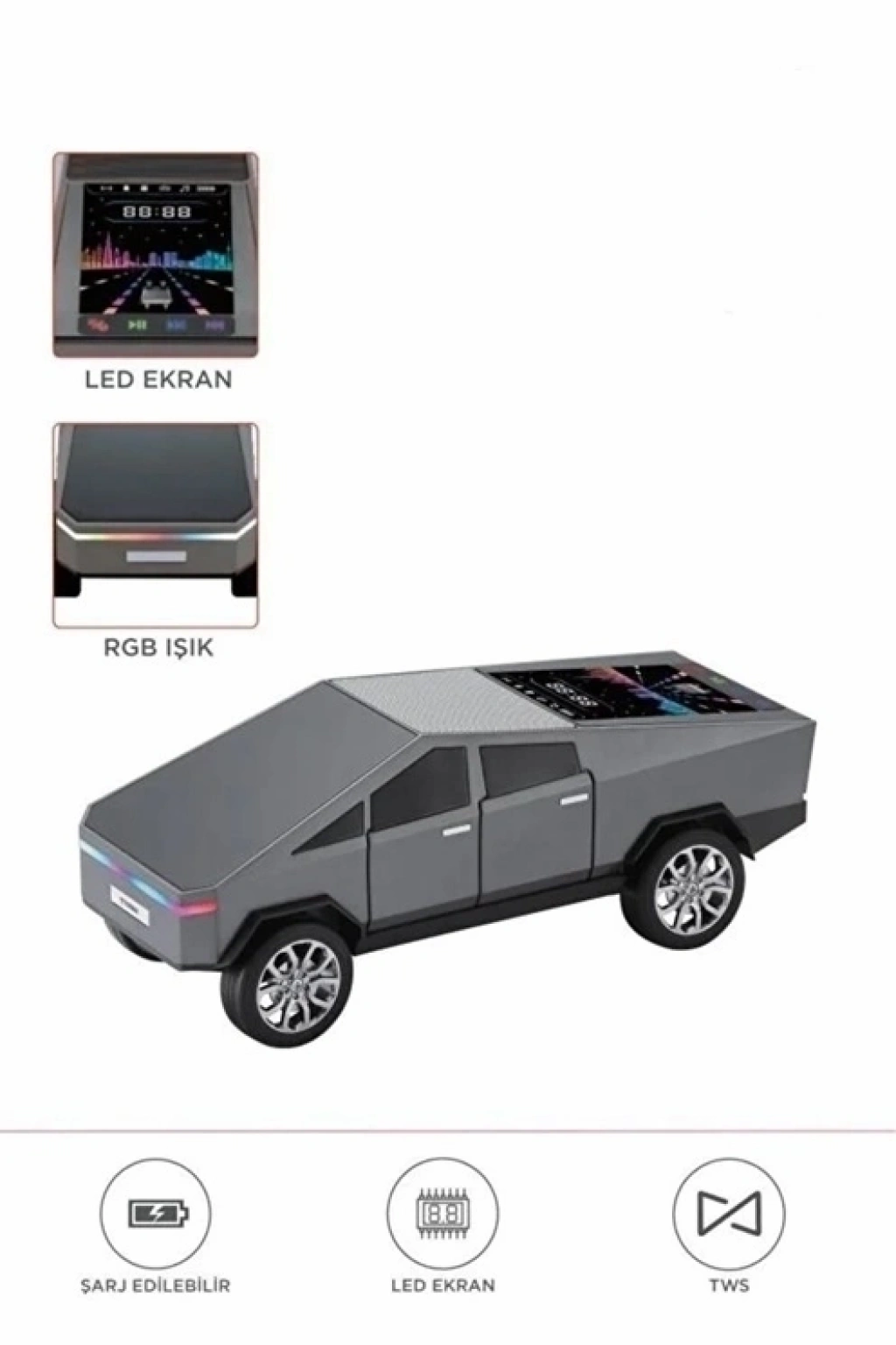 CEYLAN ADAM D68 Cyber Model Araba Tasarımlı Bluetooth Hoparlör 15w Güçlü Ses Rgb Led /tws/usb Gri