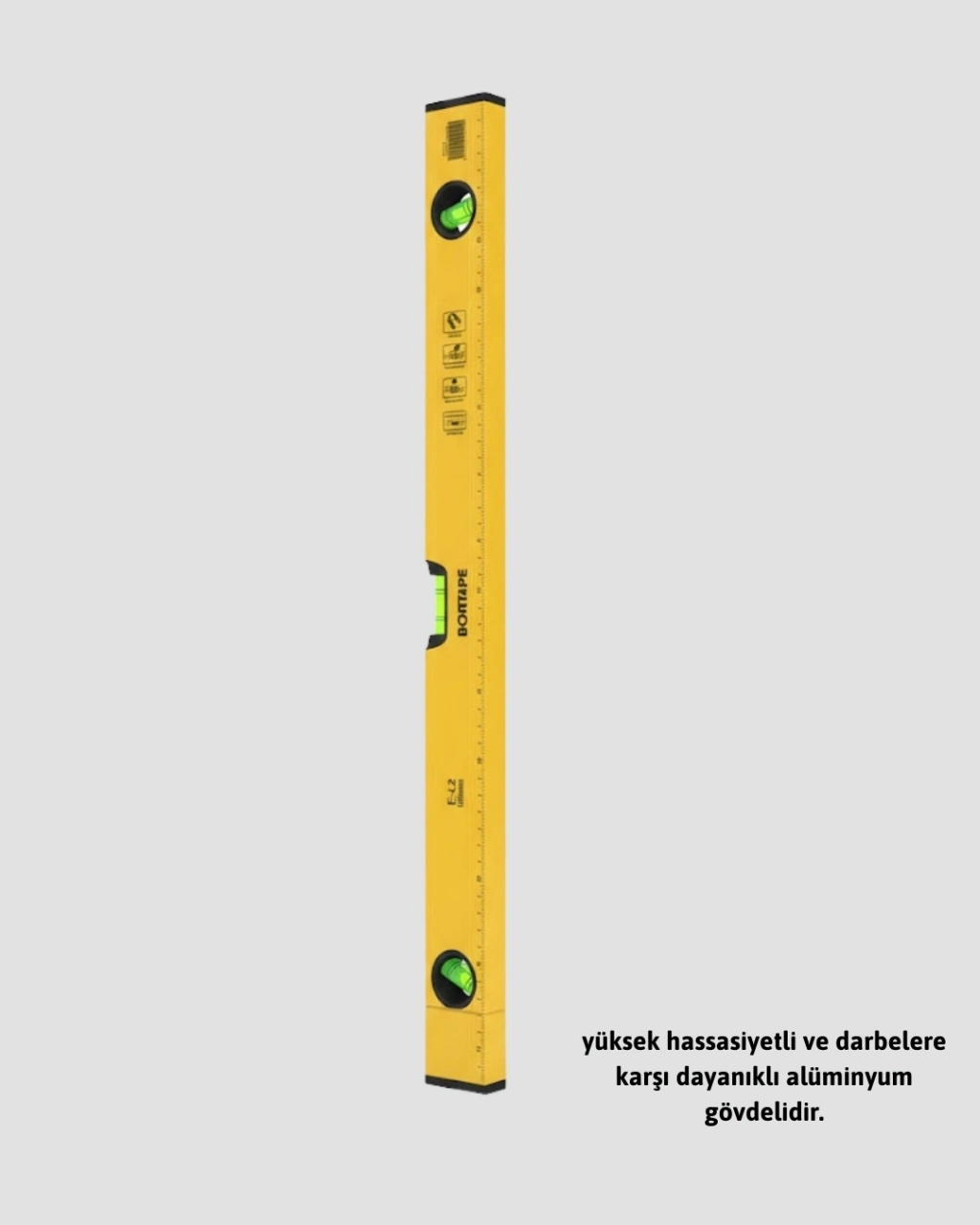 600 mm su terazisi, ölçüm doğruluğunu ve kullanım kolaylığını bir arada sunar. Sarı renkli gövdesi, net görünürlük sağlar ve ölçüm sırasında hataların kolayca fark edilmesine yardımcı olur. Yatay ve dikey ölçüm yapabilme özelliği ile çok yönlü bir kullanım sunar.Duvar montajları, raf yerleştirme, dolap kurulumu ve fayans döşeme işlemlerinde düzgün hizalama sağlar. Uzun yapısı sayesinde geniş yüzeylerde daha doğru ölçüm yapılmasını mümkün kılar. Dayanıklı plastik gövdesi, darbelere karşı dirençlidir.Ev kullanıcıları ve profesyoneller için ideal olan bu su terazisi, doğru ve simetrik sonuçlar elde etmek isteyenler için vazgeçilmez bir ölçüm aracıdır.