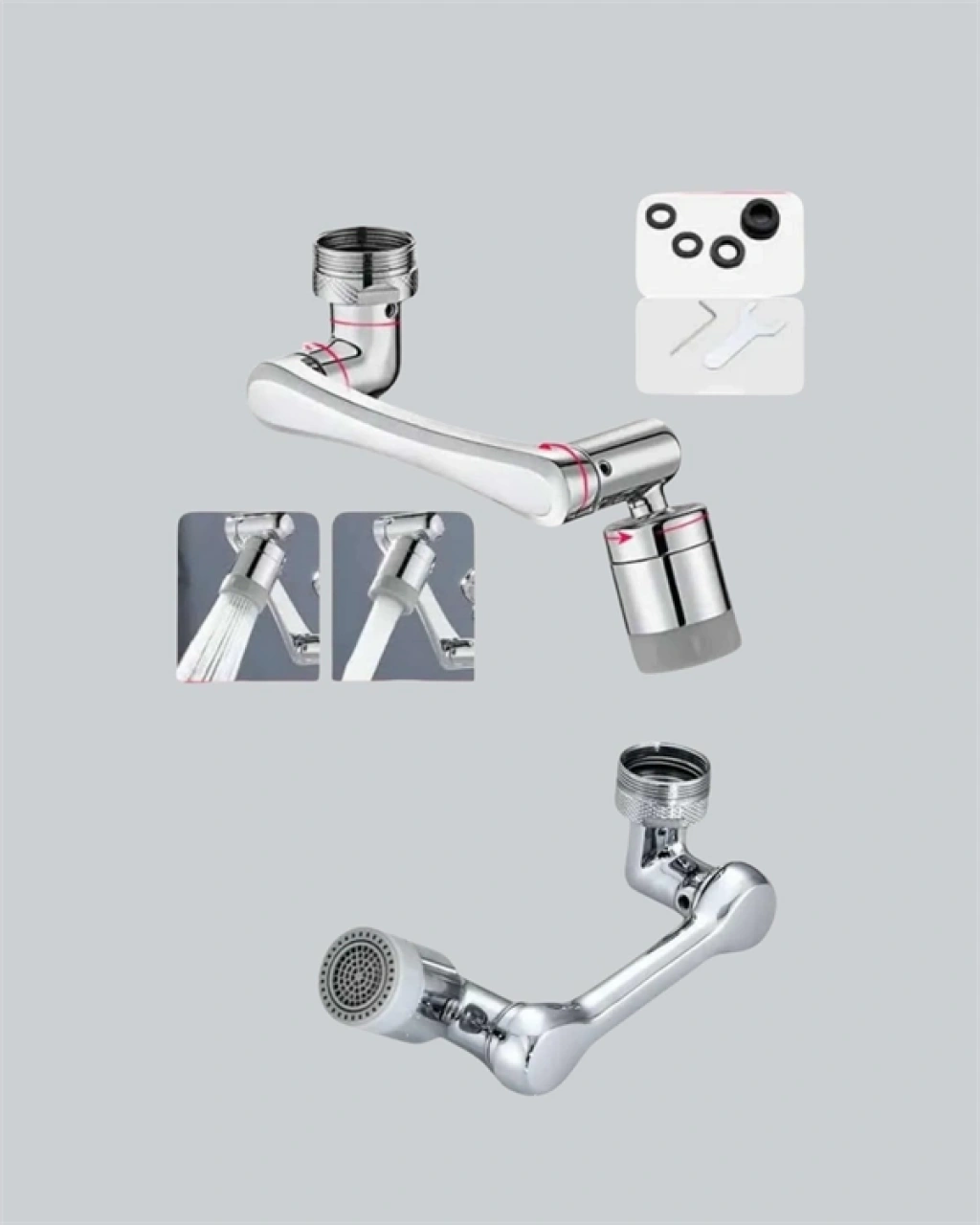 Bu esnek 1080° musluk başlığı, üç eklemli robotik tasarımıyla suyu dilediğiniz açıya yönlendirerek günlük işlemleri çok daha kolay hale getirir. Hareketli yapısı sayesinde klasik musluklara göre çok daha geniş bir kullanım alanı sunar. Lavabonun ulaşılması zor bölgelerine erişmek artık zahmetsizdir.Başlık, iki işlevsel su modu içerir: Köpük Akışı, yumuşak ve geniş bir akış sunarak hassas kullanım gerektiren işlemler için idealdir. Güçlü Sprey Akışı ise yüksek basınçlı temizleme gücüyle kirleri ve yağ kalıntılarını rahatlıkla temizler. Günlük kullanım sırasında ihtiyaç duyduğunuz moda tek hareketle geçebilirsiniz.Su tasarrufu destekleyen iç yapısı, gereksiz harcamayı azaltır ve akışı optimize eder. Böylece temizlik performansından ödün vermeden daha verimli su kullanımı sağlar.Ürün, sebze–meyve durulama, tencere-bardak temizliği, lavabo köşelerine erişim, yüz yıkama ve el temizliği gibi pek çok işlemde üstün konfor sunar. Çocuklu aileler, yaşlı kullanıcılar ve yoğun mutfak trafiği olan evler için oldukça avantajlıdır.Takması son derece kolaydır. Standart musluklarla uyumludur ve adaptörleri sayesinde farklı sistemlere de dakikalar içinde bağlanabilir.Estetik ve modern görünümüyle hem mutfak hem banyo lavabolarına şıklık ve fonksiyonellik kazandırır.