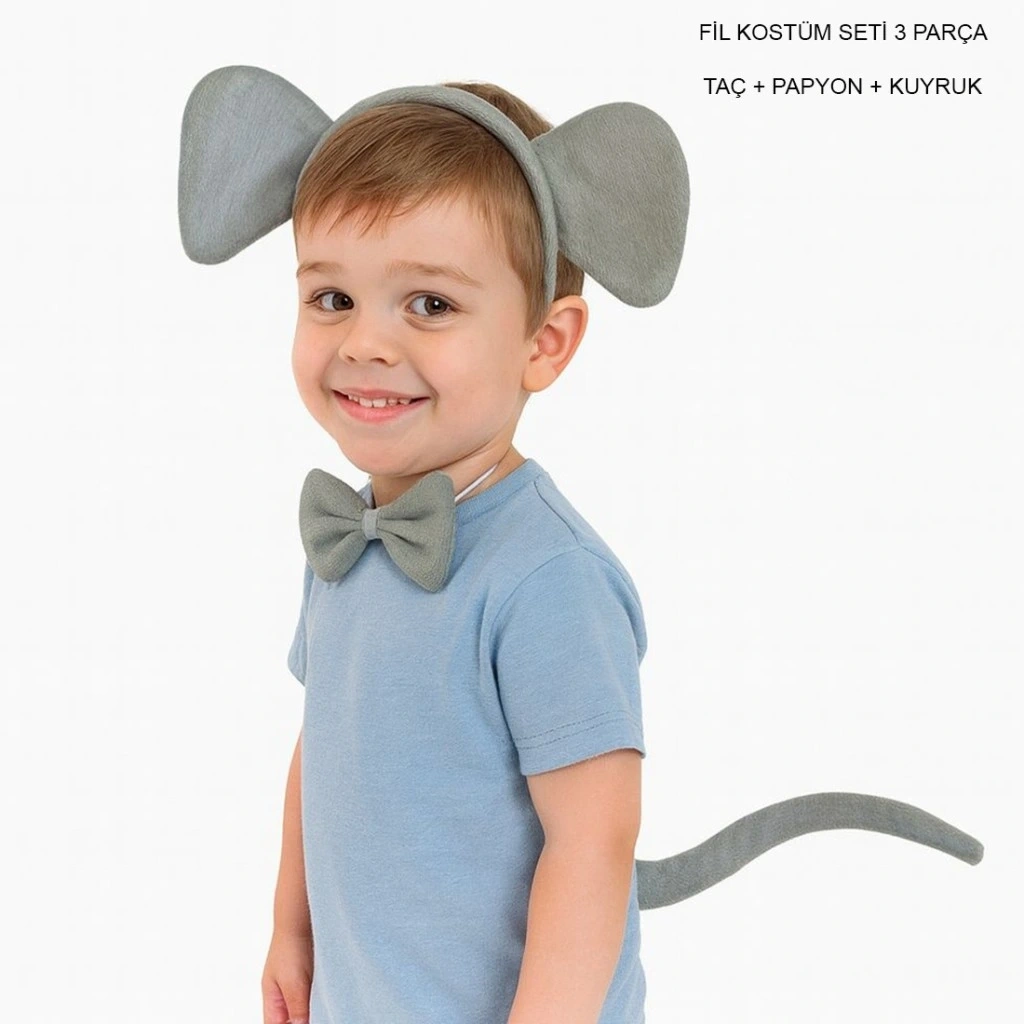 • CEYLAN ADAM Fil Kostümü Aksesuar Seti 3 lü - Taç Papyon Kuyruk
