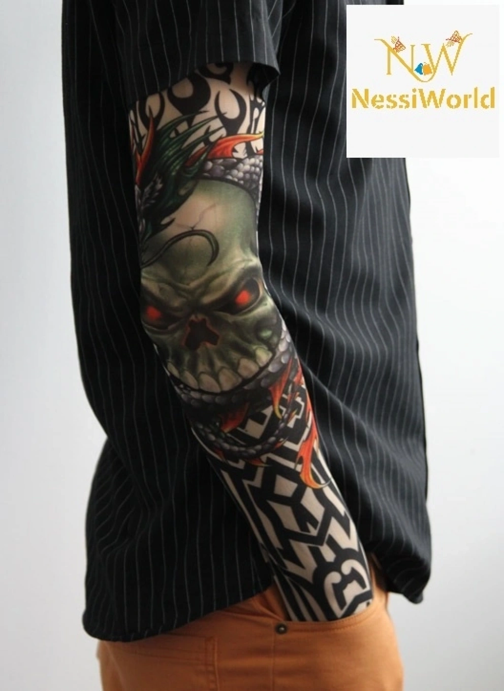 • CEYLAN ADAM Giyilebilir Kol Dövmesi Çorap Dövme 3D Baskılı Kol Bacak Dövme 2 Adet Model 18