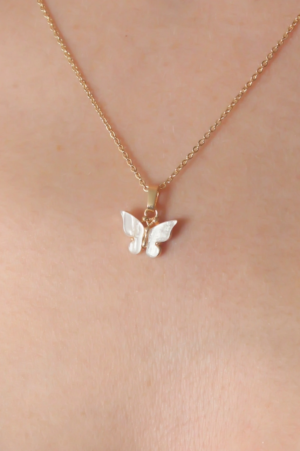 • CEYLAN ADAM Gold Beyaz Renk Kelebek Figür Kadın Kolye