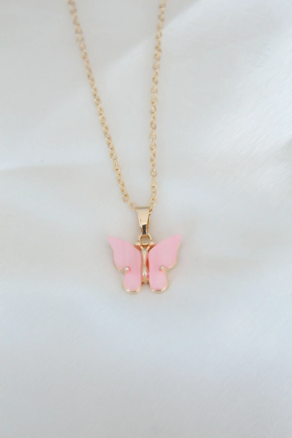 • CEYLAN ADAM Gold Kaplama Pembe Sedefli Kelebek Kolye
