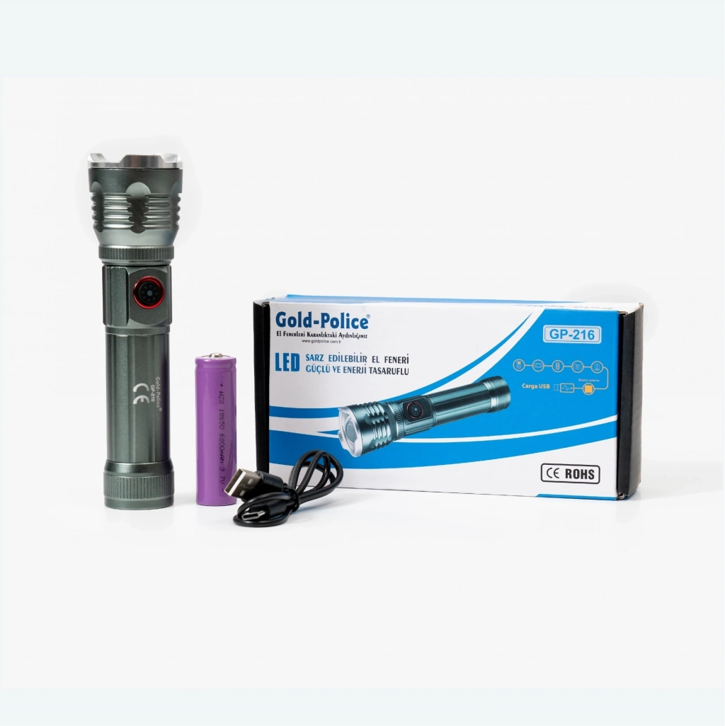 CEYLAN ADAM Gold Police Gp-216 Şarjlı El Feneri Güçlü Tg Led 2000 Lümen