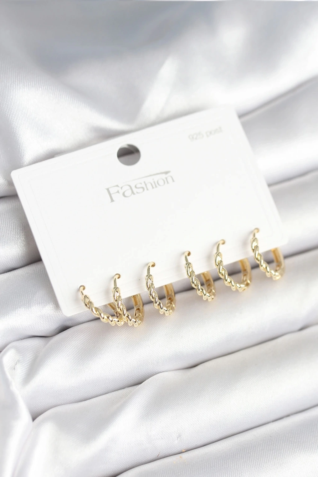 CEYLAN ADAM Gold Renk Burgu Halka Model 925 Ayar Gümüş Çivili Pirinç Küpe Seti
