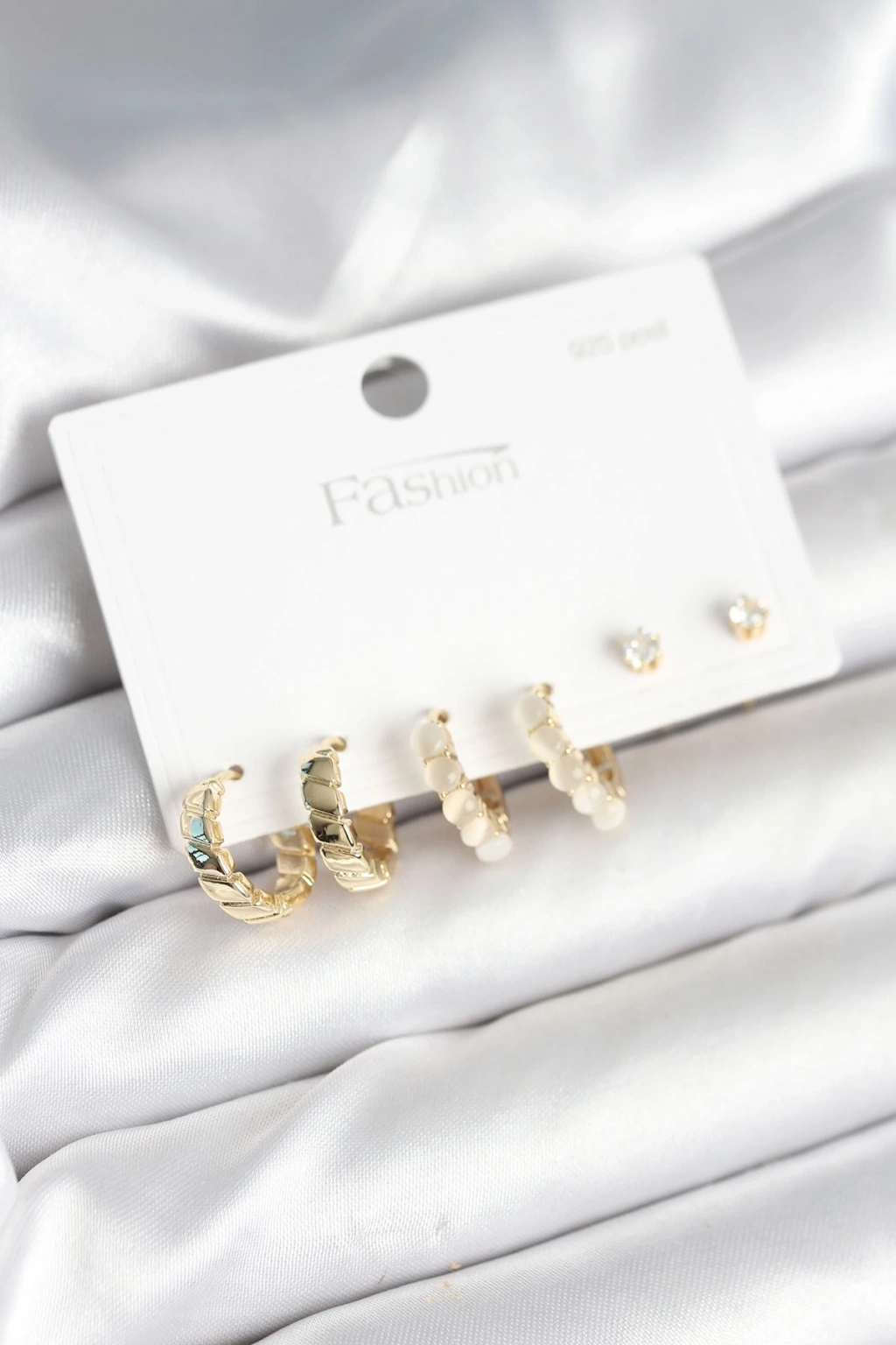 CEYLAN ADAM Gold Renk Pirinç Halka 925 Ayar Gümüş Çivili Kadın Küpe Seti