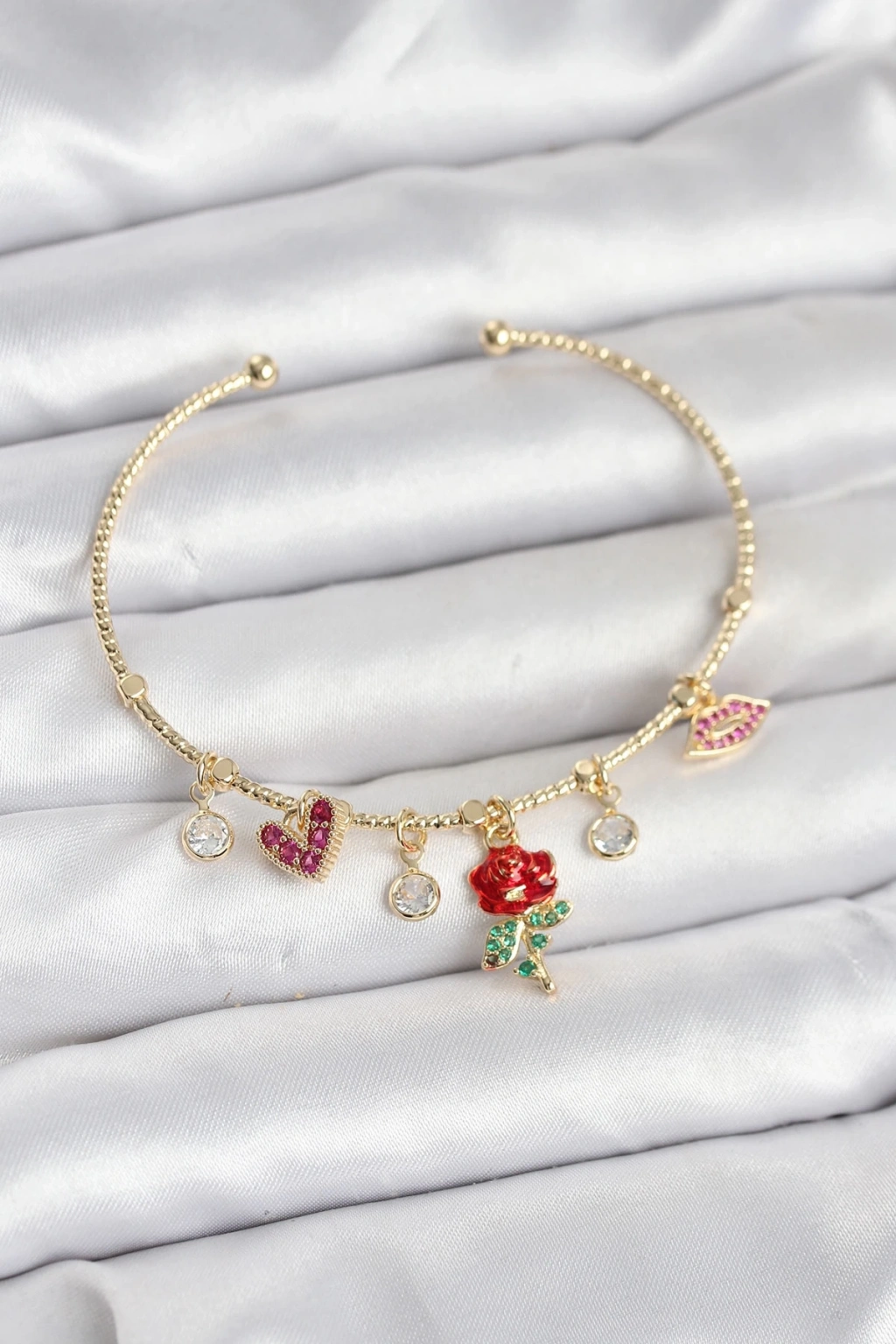 CEYLAN ADAM Gül Charmlı Gümüş Renk Pirinç Kadın Bileklik