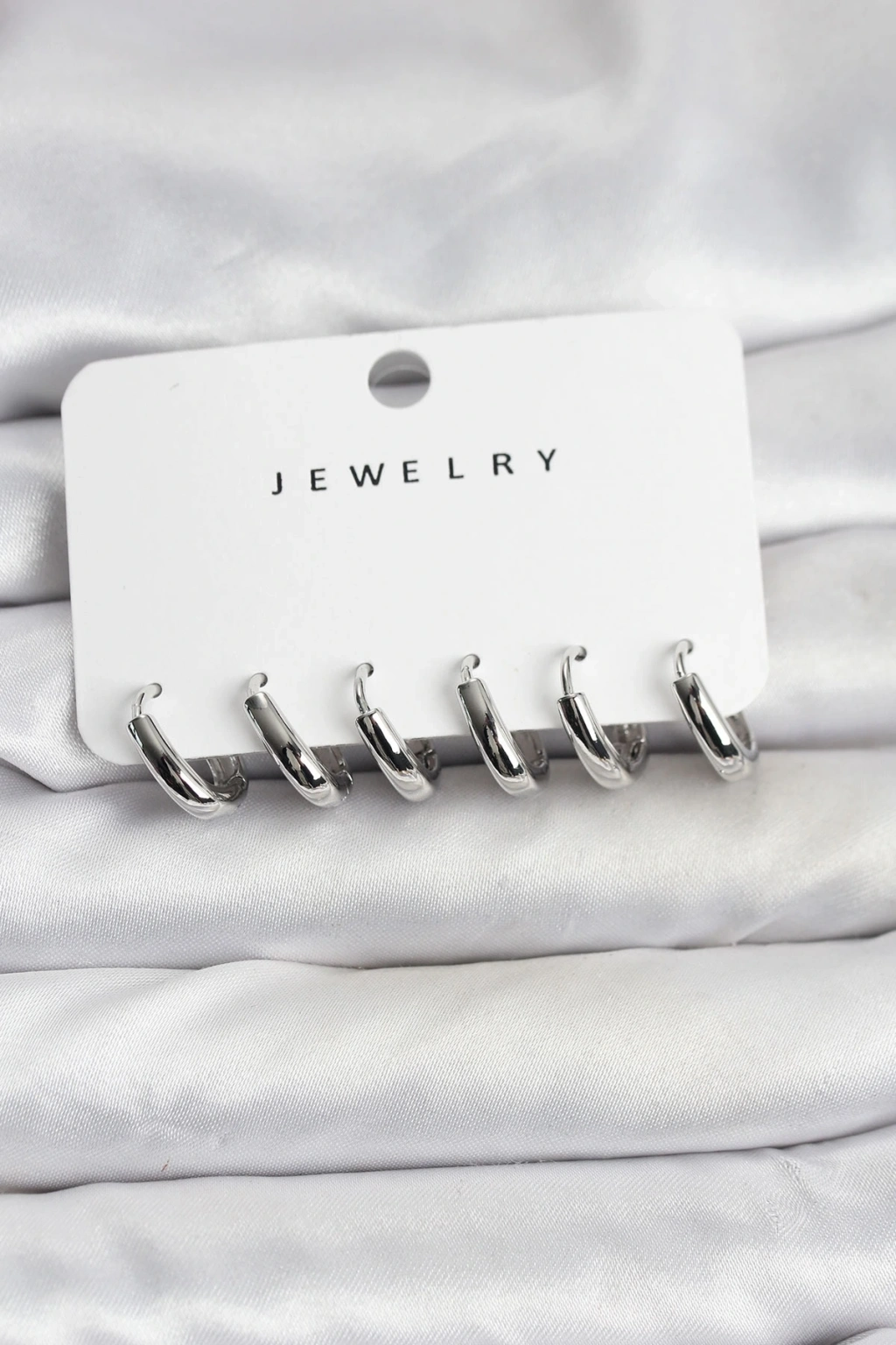 CEYLAN ADAM Gümüş Renk Pirinç Halka Kadın Küpe Seti