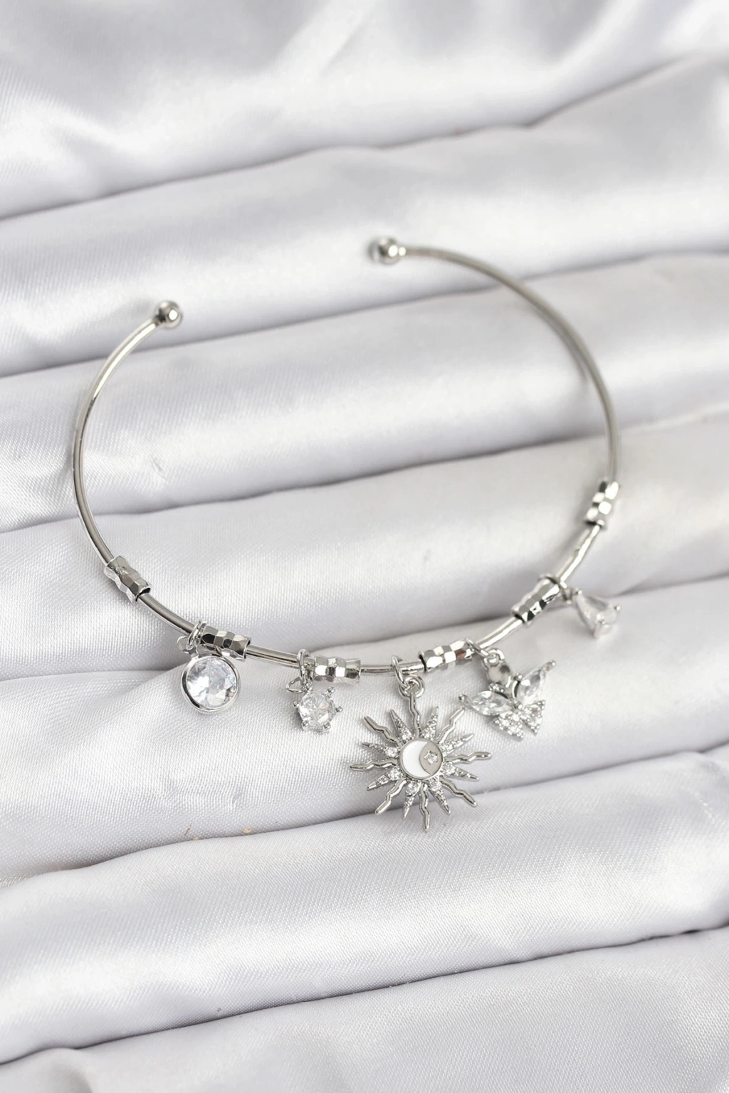 CEYLAN ADAM Güneş Charmlı Gümüş Renk Pirinç Kadın Bileklik