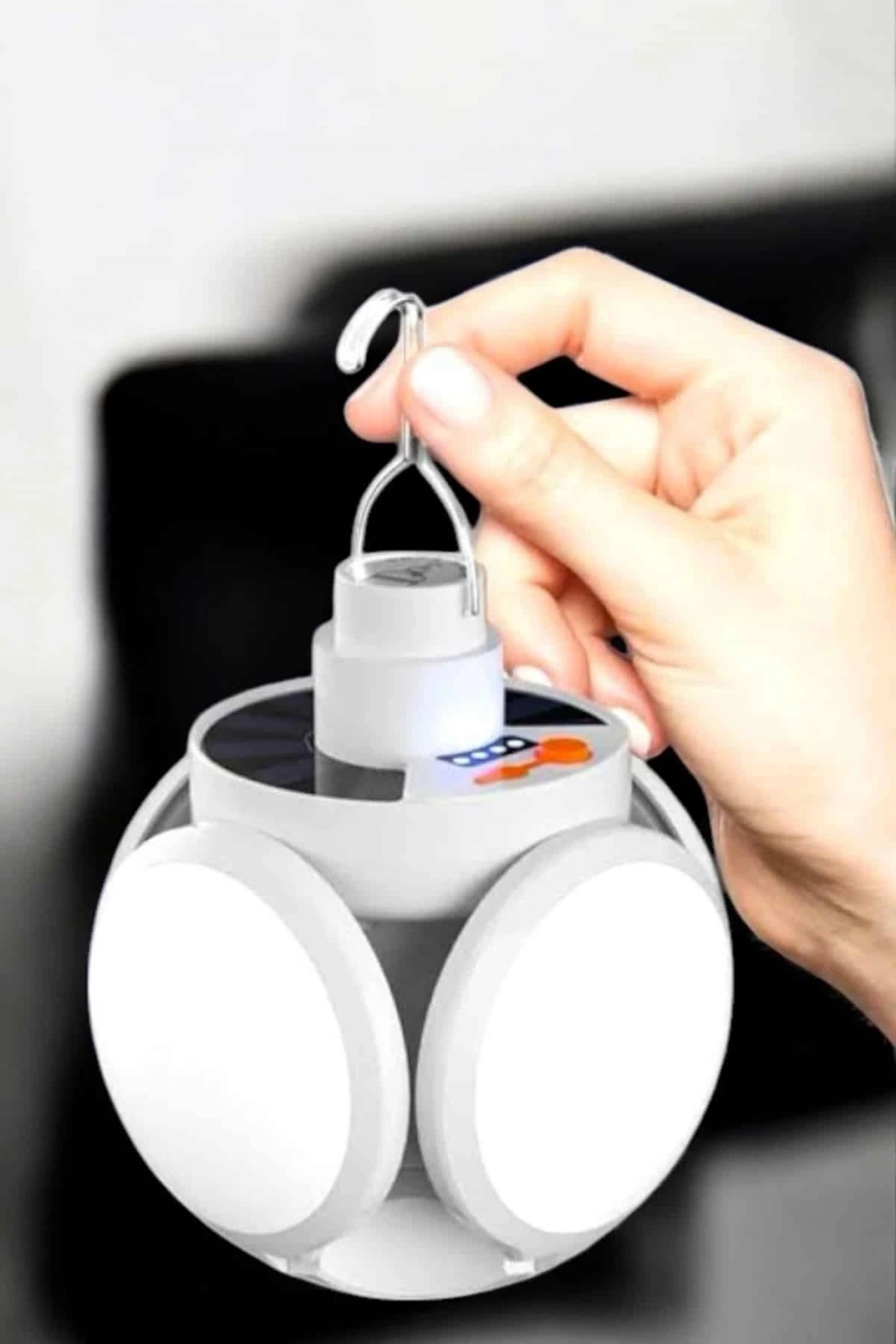 • CEYLAN ADAM Kamp Lambası Işıldak Beyaz Işık Güneş Enerjili Solar Aydınlatma 5 Kanatlı Katlanabilir