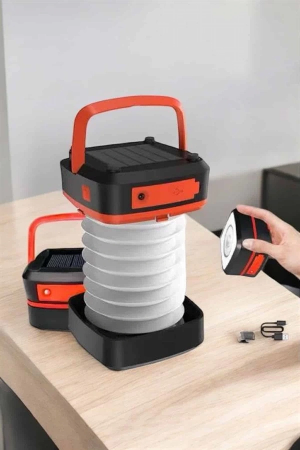 • CEYLAN ADAM Katlanabilir Kamp Lambası Solar Fener Görünümlü 3 Kademeli Şarjlı