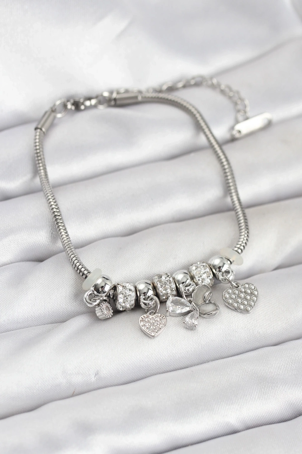 • CEYLAN ADAM Kelebek Charmlı Gümüş Renk Kadın Bileklik