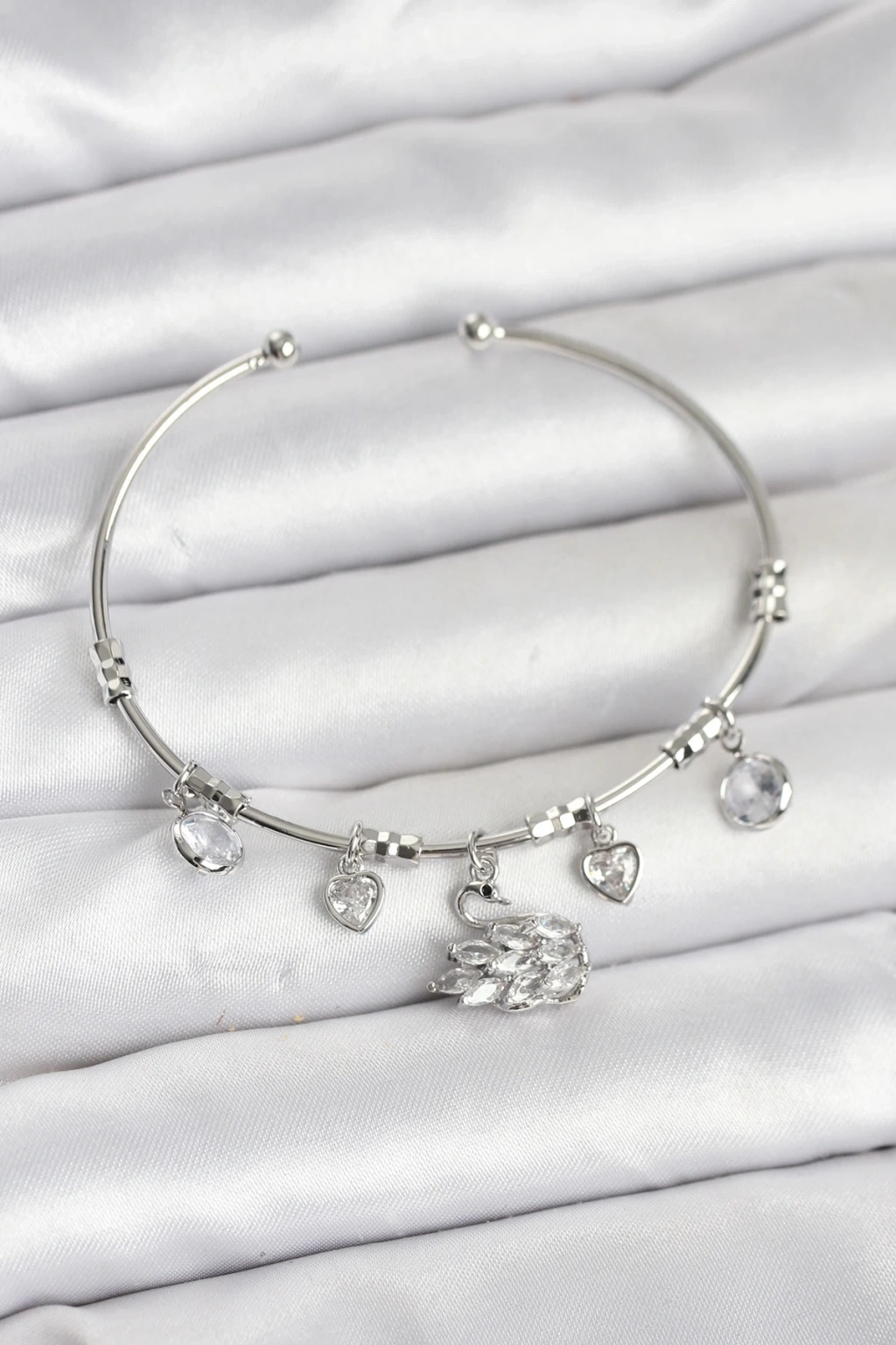 CEYLAN ADAM Kuğu Charmlı Gümüş Renk Kadın Bileklik