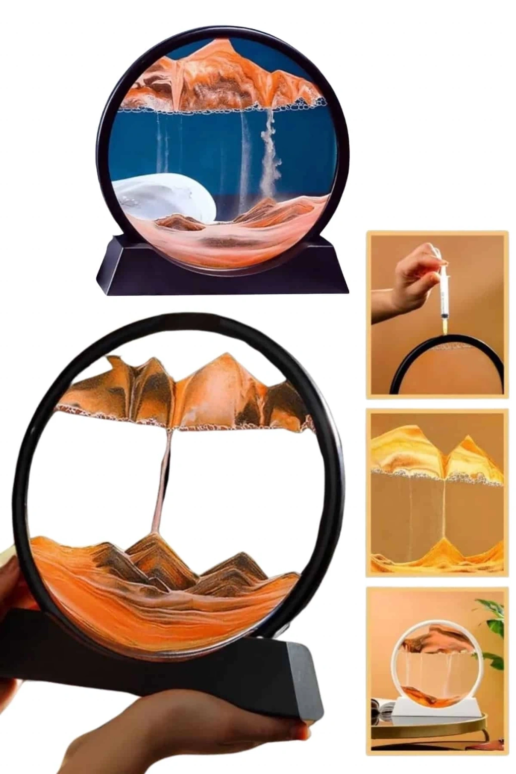 • CEYLAN ADAM Kum Saati Yuvarlak Şık Kum Tablosu Dekoratif Kum Sulu Kum Saati