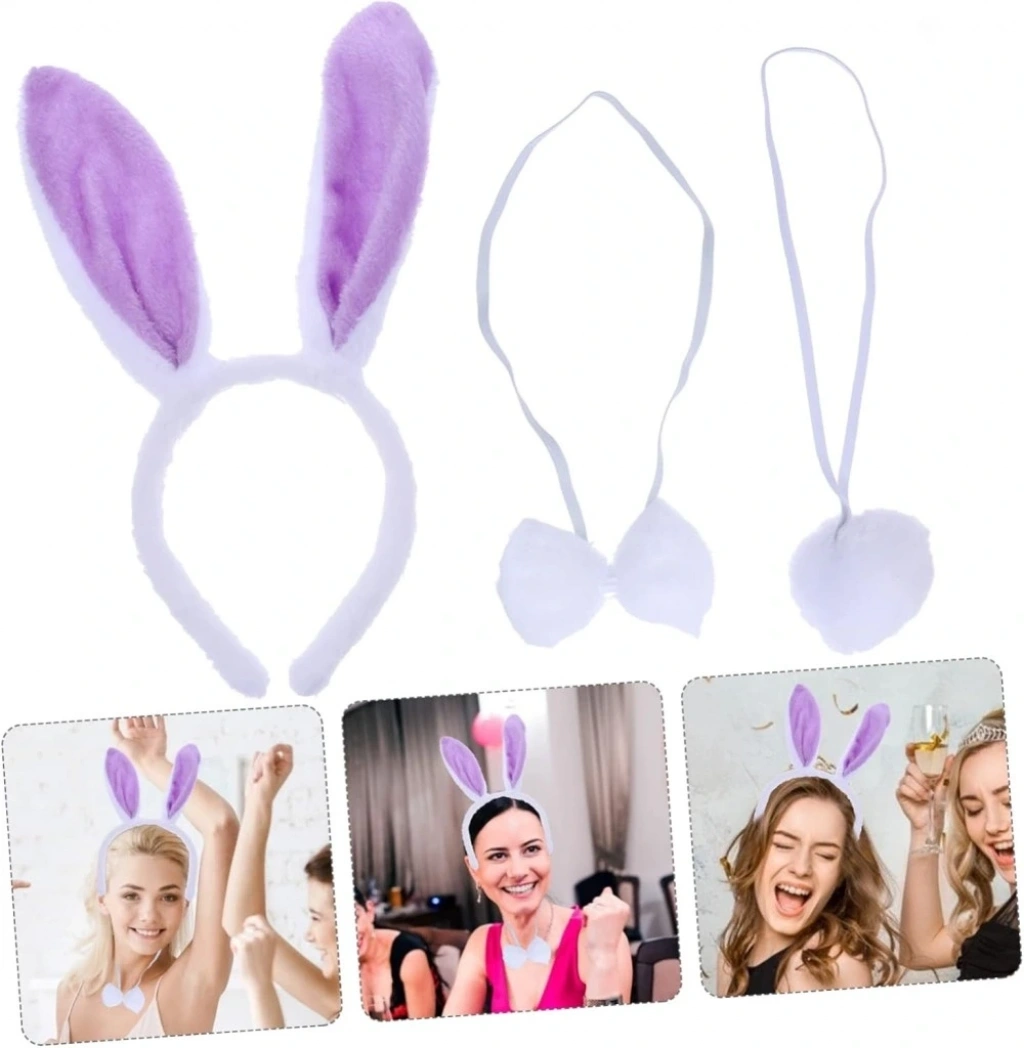 • CEYLAN ADAM Lila Mor Tavşan Kulak Papyon Kuyruk 3'lü Parti Seti
