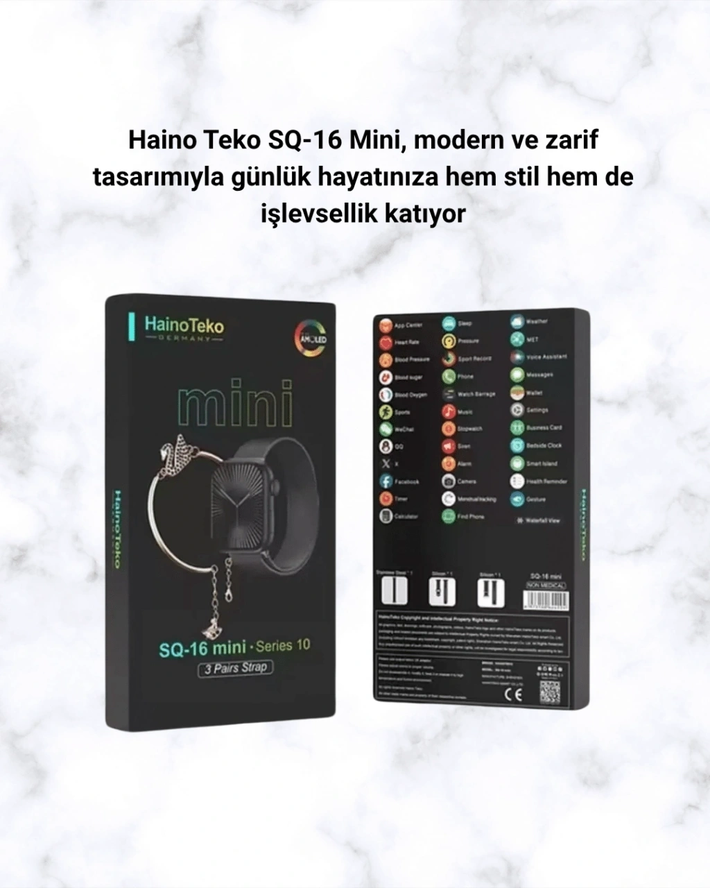 Dokunmatik ekranı, yüksek çözünürlüğü ve canlı renkleriyle SQ-16 Mini Series 10, hem estetik hem de işlevsellik sunar. Çağrı ve bildirim takibi, müzik kontrolü ve kamera kontrolü gibi akıllı özellikleriyle telefonunuza uzaktan erişim sağlar. Günlük hayatınızı kolaylaştıran teknolojiyi bileğinizde taşıyın.