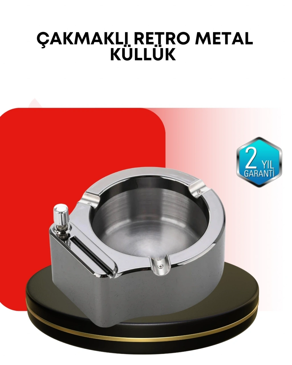 Paslanmaz çakmaklı küllük, masa üstü kullanım için tasarlanmış pratik bir üründür. Çakmak ve küllüğün bir arada olması, kullanıcıya kullanım kolaylığı sunar. Günlük yaşamda düzenli ve erişilebilir bir kullanım sağlar.Metal malzemeden üretilmiş olması, ürünü uzun ömürlü hale getirir. Paslanmaz yüzey, ısıya ve dış etkenlere karşı dirençlidir. Kolay temizlenebilir yapısı, hijyenik kullanım imkânı sunar.Çakmak benzini ile çalışan mekanizma, güvenilir bir ateşleme sağlar. Yakıt ürüne dahil değildir. Kullanımı kolaydır ve günlük kullanımda pratiklik sunar.Yuvarlak ve sade tasarımı, modern dekorasyon anlayışına uyum sağlar. Ev ve ofis ortamlarında dekoratif bir masa üstü aksesuarı olarak kullanılabilir.Bu çakmaklı küllük, dayanıklı yapısı ve şık görünümü ile uzun süreli kullanım için ideal bir üründür.