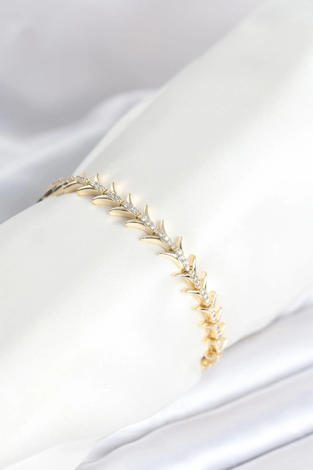 CEYLAN ADAM Pirinç Gold Renk Balık Sırtı Model Zirkon Taşlı Kadın Bileklik