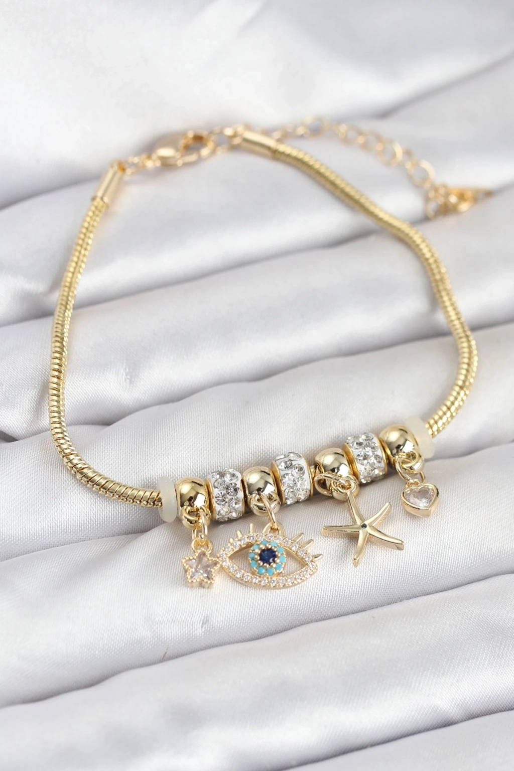CEYLAN ADAM Pirinç Gold Renk Göz Model Charmlı Kadın Bileklik