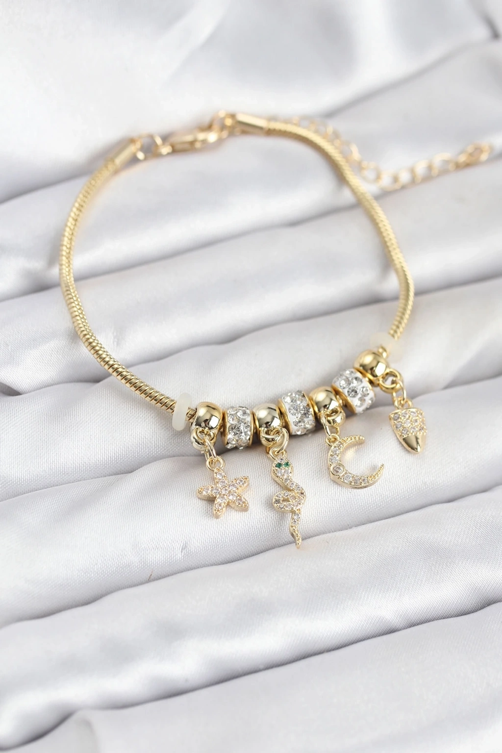 • CEYLAN ADAM Pirinç Gold Renk Yılan Charmlı Kadın Bileklik