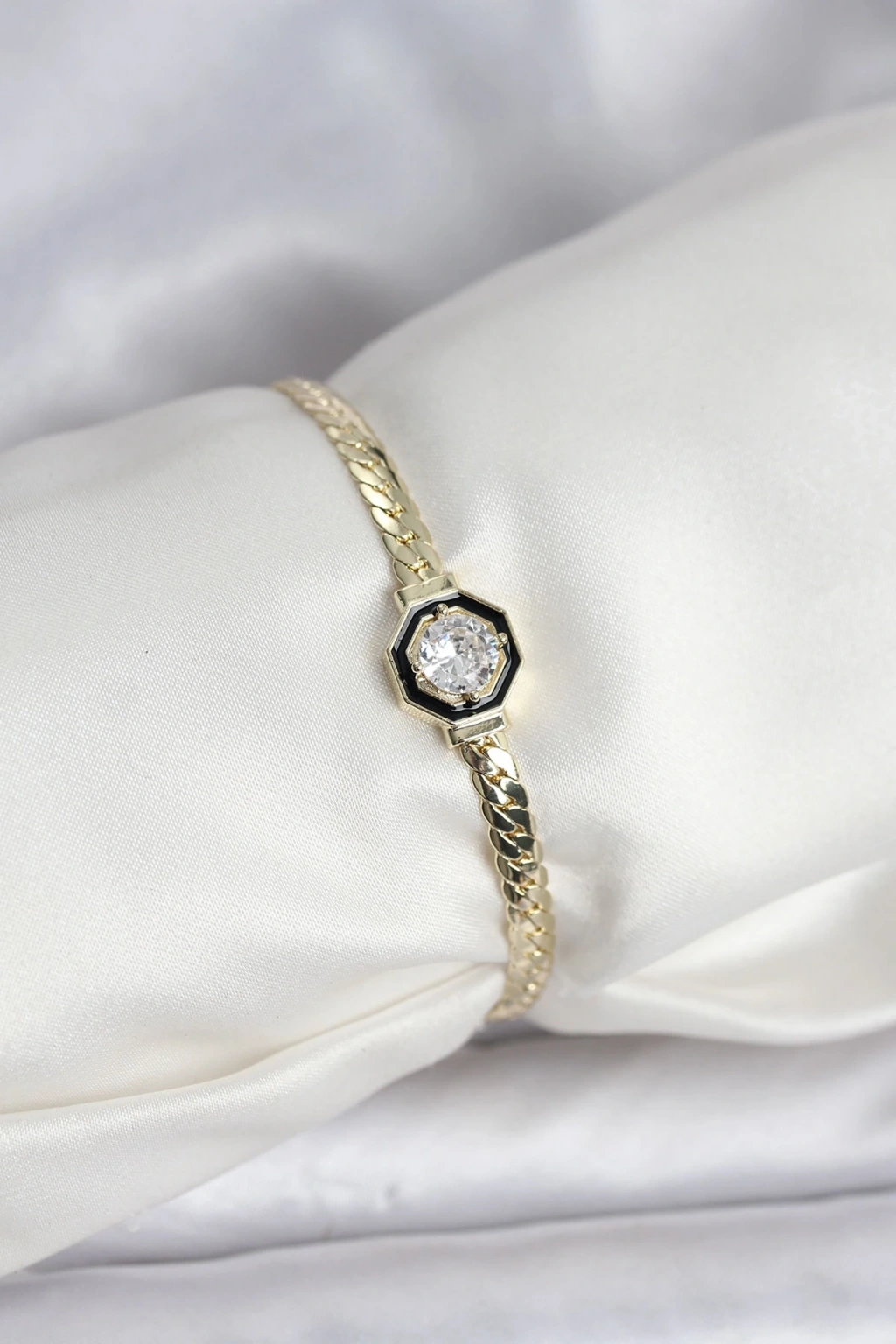 CEYLAN ADAM Pirinç Gold Renk Zirkon Taşlı Kadın Bileklik