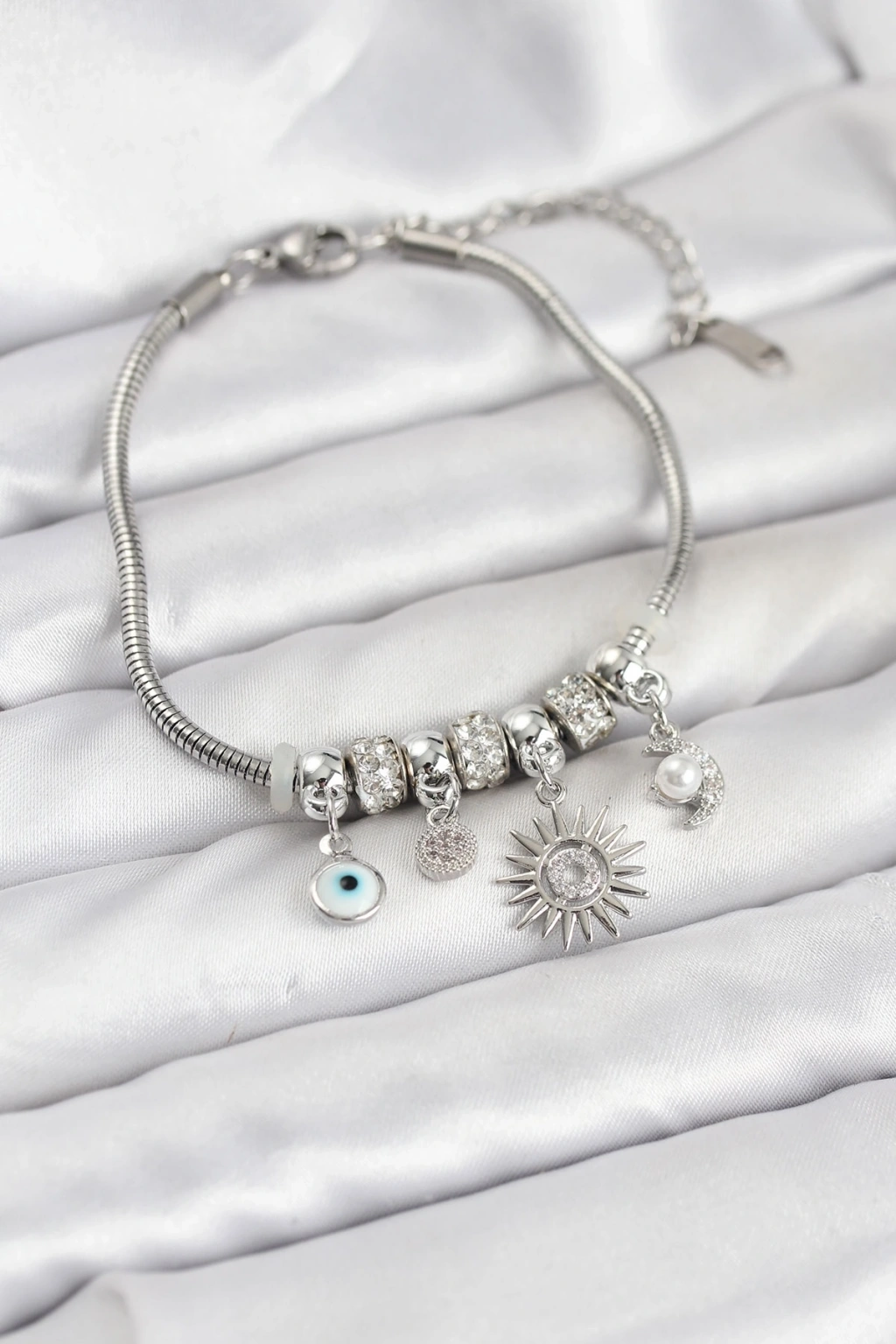 CEYLAN ADAM Pirinç Gümüş Renk Güneş Charmlı Kadın Bileklik