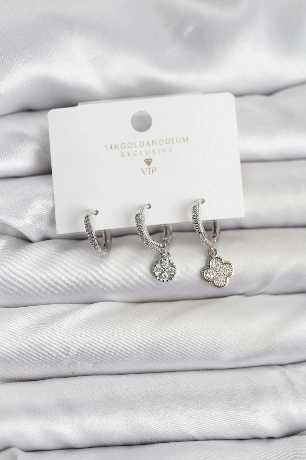 CEYLAN ADAM Pirinç Gümüş Renk Yonca Model 3'lü Kadın Küpe Seti