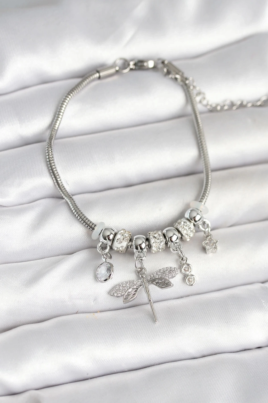 CEYLAN ADAM Pirinç Gümüş Renk Yusufçuk Charmlı Kadın Bileklik