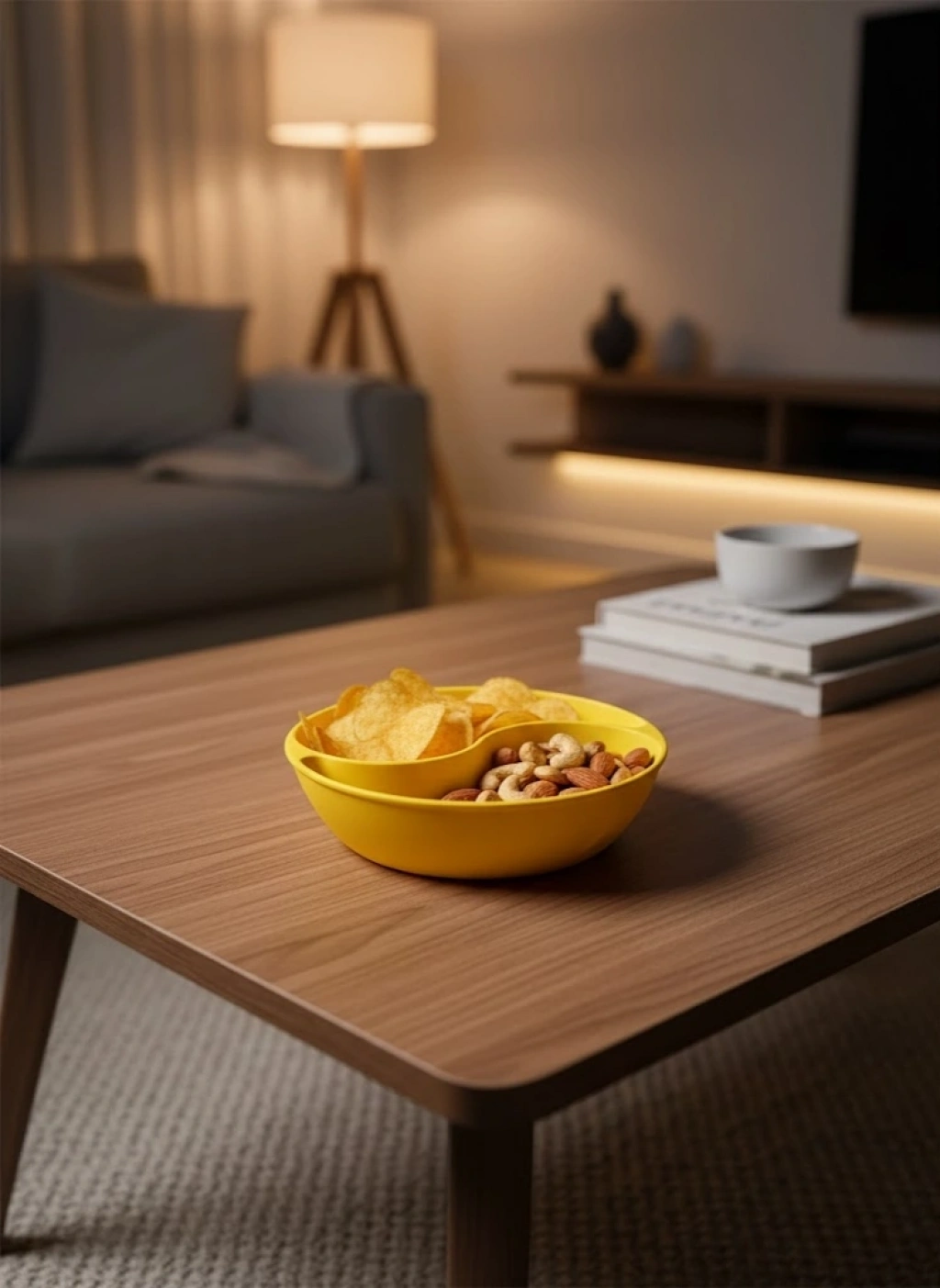 Sarı çerezlik kase seti, canlı rengi ve pratik tasarımıyla salon ve masa üstü sunumlarına keyifli bir dokunuş katar. 3x12 cm ölçüsündeki kaseler, çerez, kuruyemiş ve atıştırmalıklar için ideal boyuttadır. 4 adetlik set içeriği sayesinde misafir sofralarında ve günlük kullanımda rahatlıkla tercih edilebilir.Bölmeli yapısı, farklı çerez türlerini aynı anda sunma imkânı sağlar. Çerezler birbirine karışmadan düzenli bir sunum elde edilir. Sarı rengi, masa üzerinde enerjik ve sıcak bir görünüm oluşturur. Özellikle salon masası, sehpa veya TV ünitesi üzerinde kullanıldığında dekoratif bir detay olarak da öne çıkar.Hafif ve kullanışlı yapısı sayesinde kolay taşınır ve pratik bir kullanım sunar. Günlük çay saatlerinden misafir ağırlamaya kadar birçok farklı ortamda rahatlıkla kullanılabilir. Hem işlevsel hem de estetik bir çerezlik seti arayanlar için ideal bir üründür.
