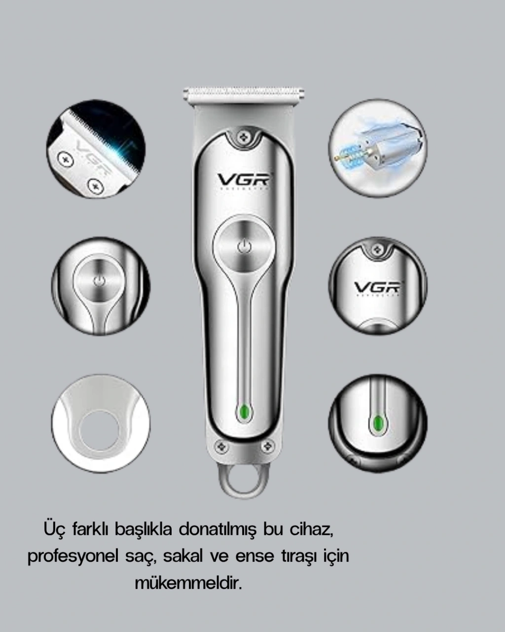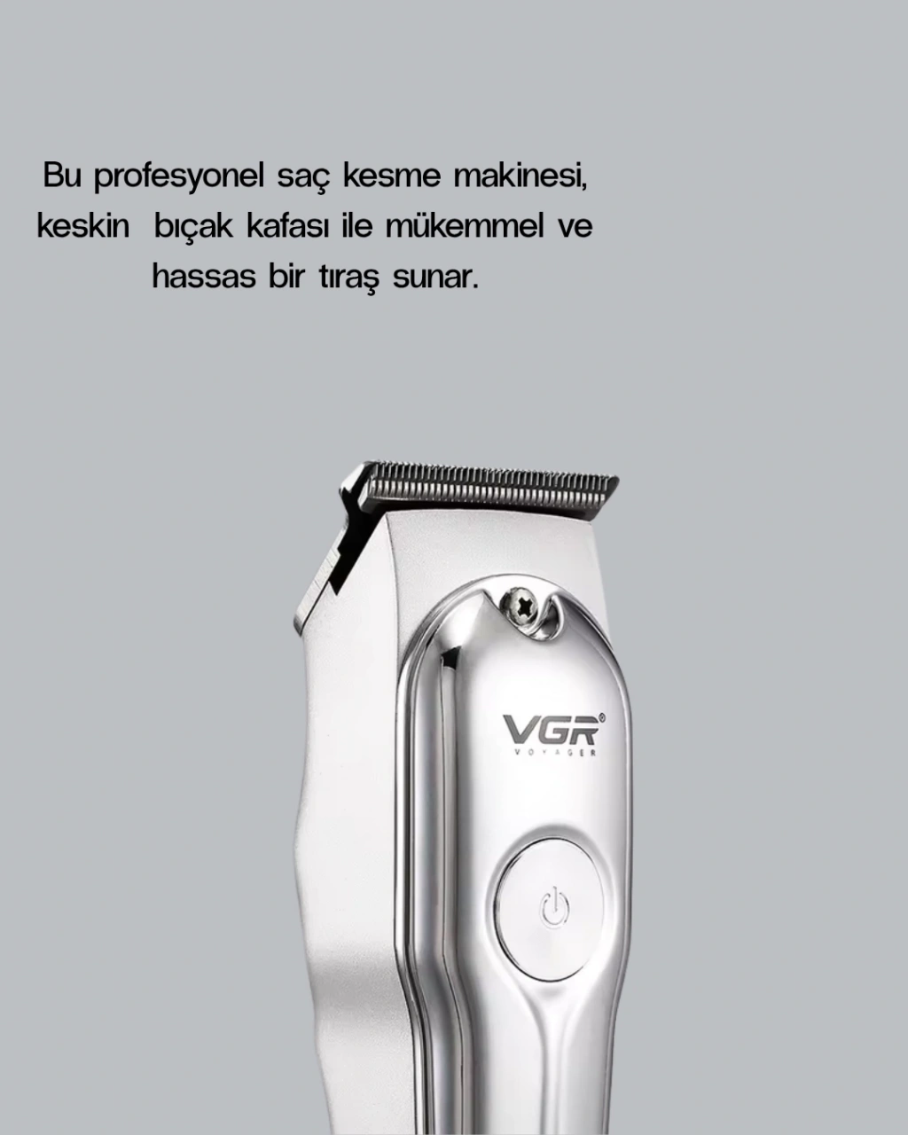 Bakım rutininizi profesyonel seviyeye taşıyacak Şarjlı Gümüş Tıraş Makinesi, güçlü performansı ve zarif tasarımıyla öne çıkıyor. 120 dakikalık uzun çalışma süresiyle tek şarjda birden fazla kullanım sağlar, böylece seyahatlerde ve yoğun günlerde bile tıraş keyfiniz yarım kalmaz.Cihaz, 3 farklı değiştirilebilir başlık ile saç, sakal ve ense tıraşında tam kontrol sunar. Hassas kesim teknolojisi, her uzunluktaki tüyü pürüzsüz şekilde alırken cilt yüzeyine zarar vermez.Keskin ve cilt dostu bıçakları, tahriş olmadan sinekkaydı tıraş yapmanıza imkân tanır.Kompakt yapısı – 14 cm uzunluk, 3 cm kalınlık, 40 gram ağırlık – ile hem taşınabilir hem de ergonomiktir. Elinize tam oturan kaymaz yüzeyi, uzun süreli kullanımlarda bile konfor sağlar.Gümüş desenli gövdesiyle estetik bir görünüm sunarken, sessiz motor teknolojisiyle rahatsız edici gürültü olmadan çalışır.Bu tıraş makinesi, profesyonel performans arayan erkekler için tasarlanmıştır. Günlük kullanımda pratiklik, seyahatlerde taşınabilirlik ve her zaman pürüzsüz bir sonuç isteyenler için mükemmel bir seçimdir.